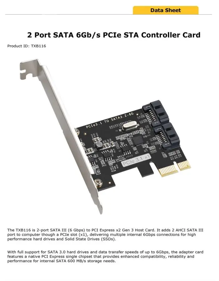 Comprar Tarjeta de expansión TXB116 PCI-E x1 a 2 puertos SATA III 6 Gb/s con chip JMB582 PCI Express x1 tarjeta adaptadora de controlador SATA