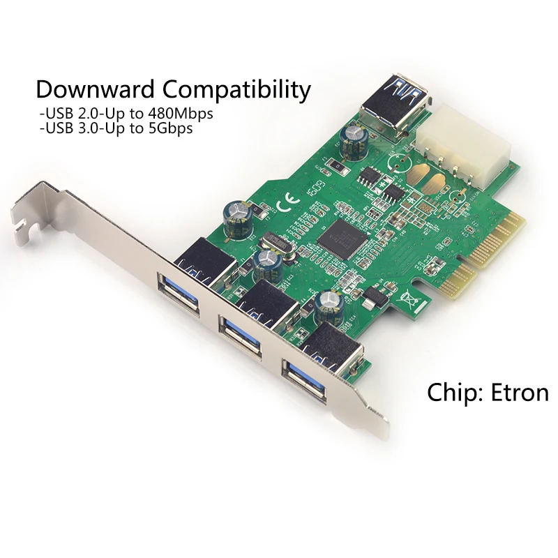 Comprar Tarjeta de expansión USB 3,0 PCI-e Adaptador PCIe USB3.0 3 externos + 1 convertidor USB PCI express interno Compatible con carga de IPad