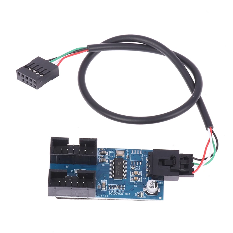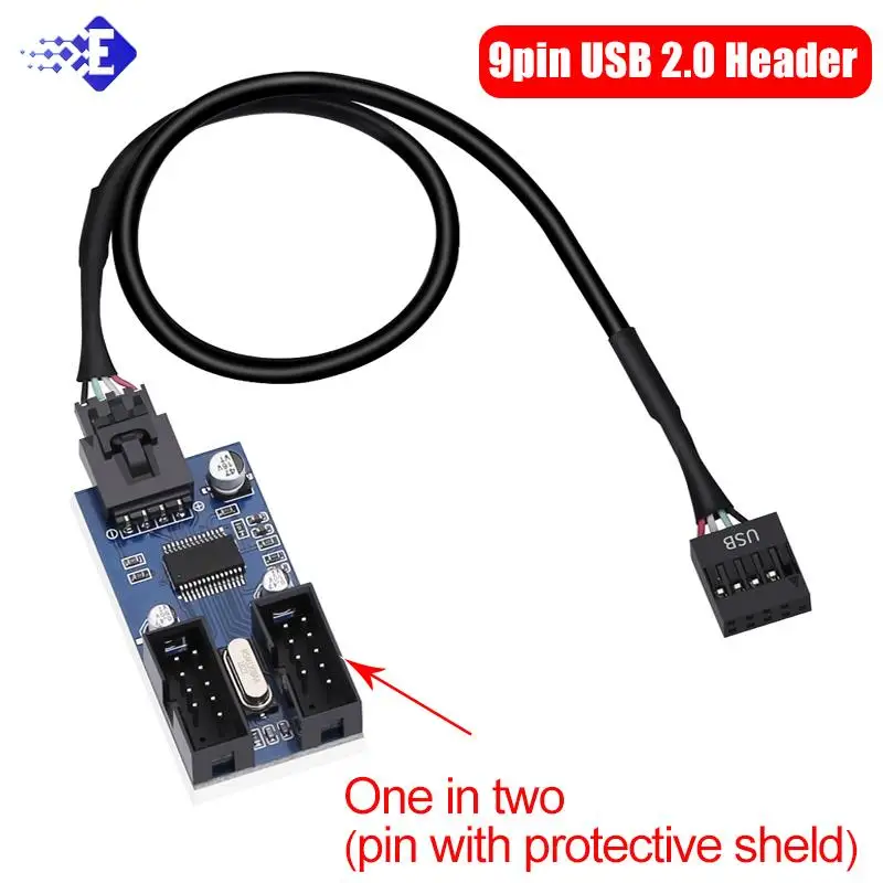 Comprar Tarjeta de expansión USB de 9 pines de 30cm, adaptador de Cable de extensión macho 1 a 2 hembra, placa de circuito 2,0 HUB Hub para placa base de escritorio