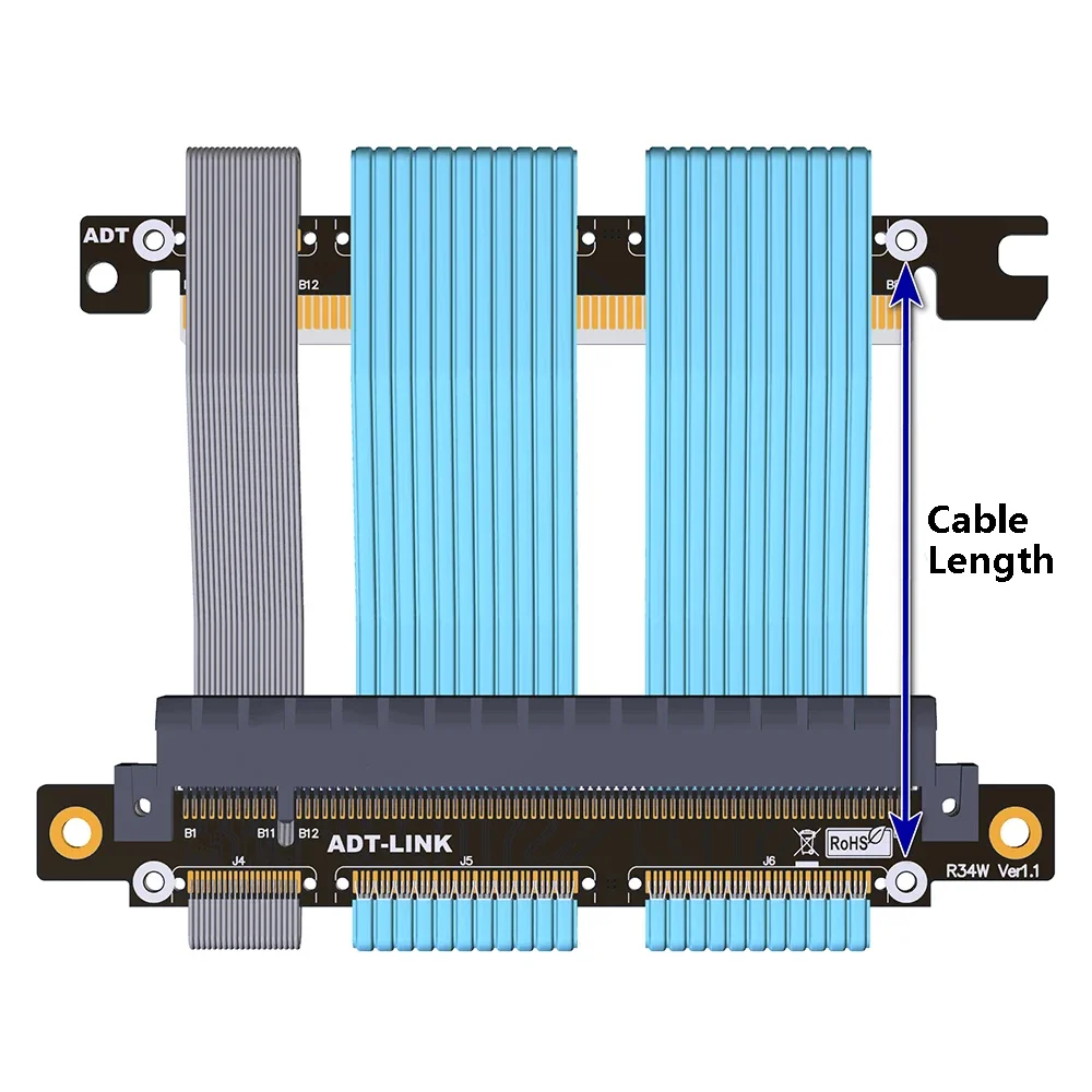 Cuanto más largo sea el cable, más obvias serán las tres anomalías de atenuación de la señal, la interferencia de la señal y el retraso de la señal.Estas tres anomalías son la principal causa de pérdida.La longitud de línea medida del producto es inferior a 25 cm y PCIe 4.0 puede funcionar a máxima velocidad, y la señal se atenuará si supera los 30 cm.