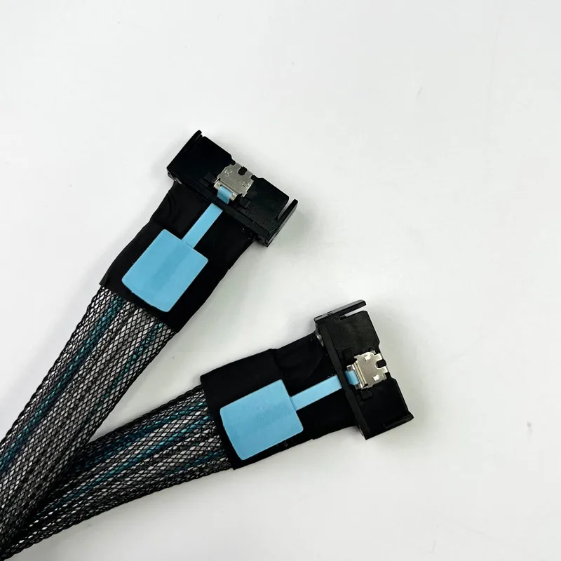 La longitud del cable de este producto se refiere a la longitud del cable MCIO, como se muestra en la flecha azul a continuación.