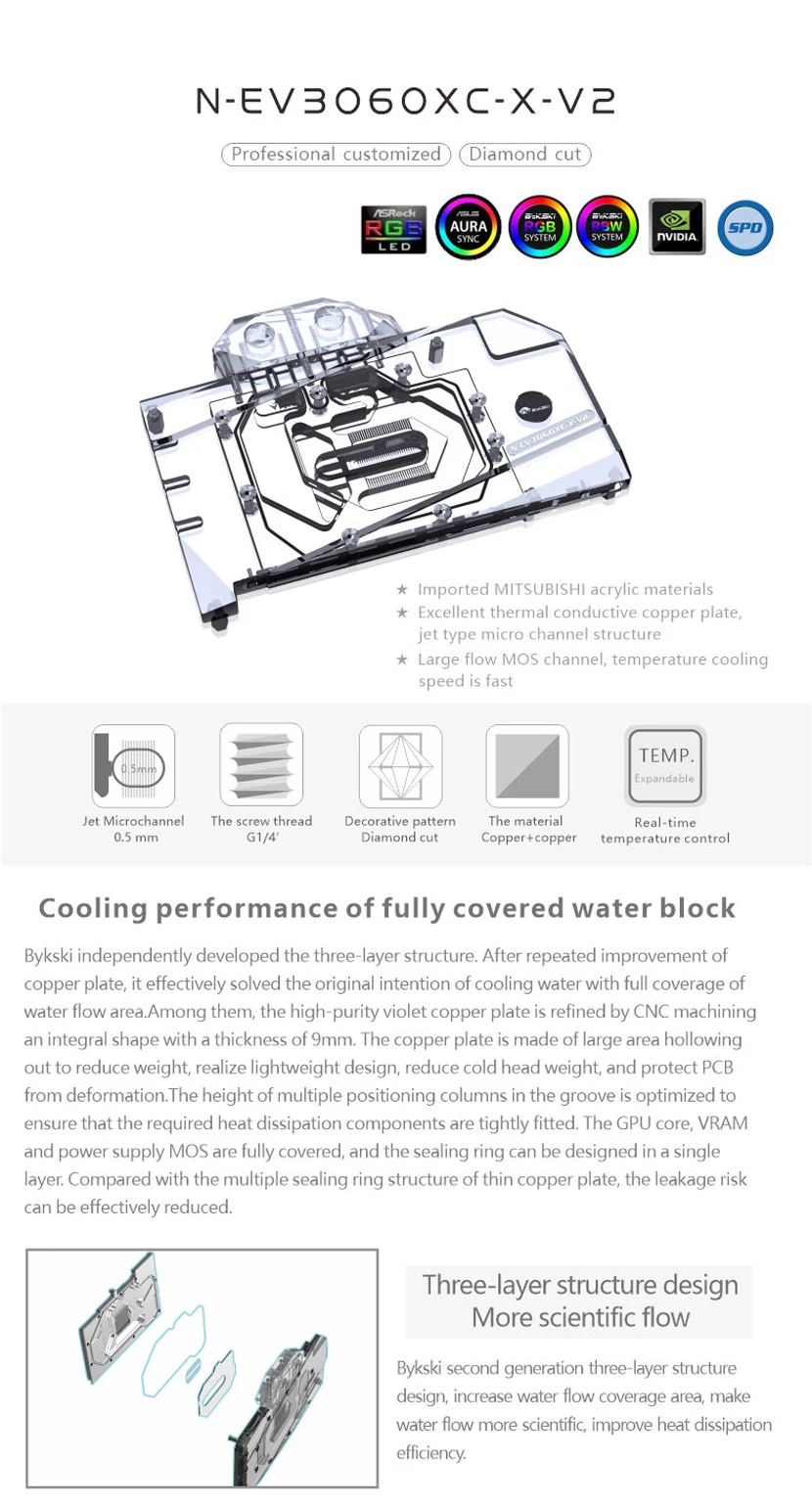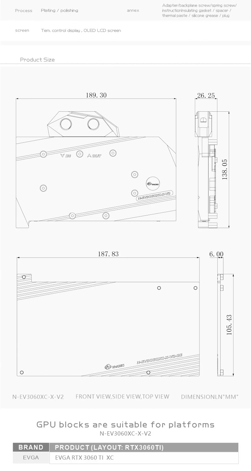 Tarjeta gráfica Bykski bloque de agua para tarjeta de vídeo EVGA RTX 3060 TI XC con placa trasera, enfriador GPU N-EV3060XC-X-V2
