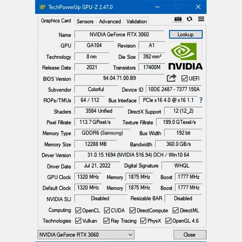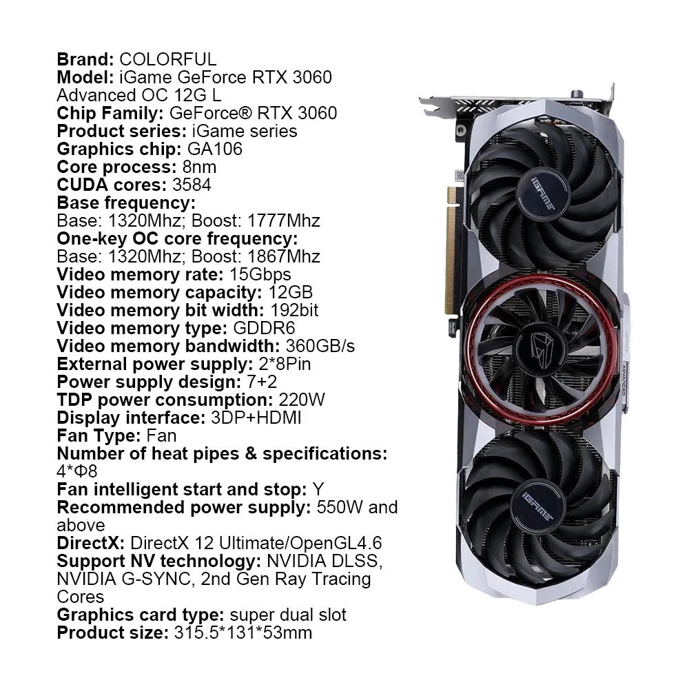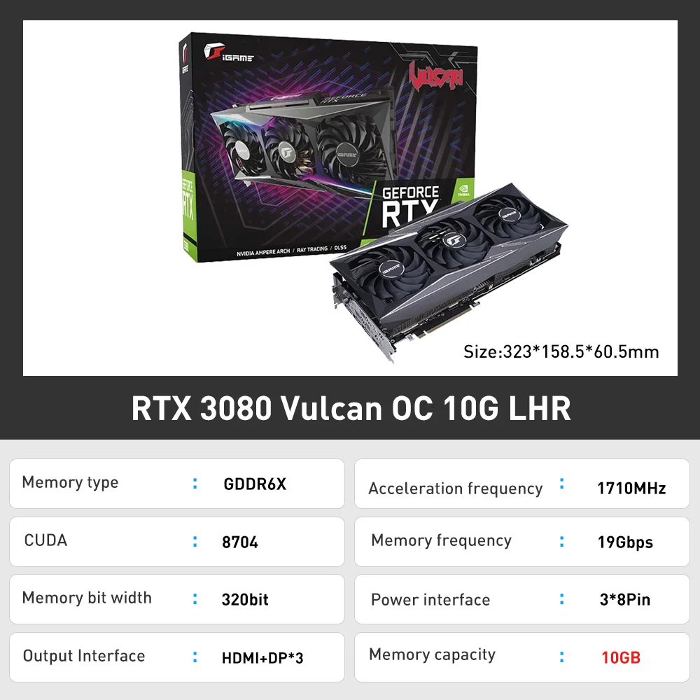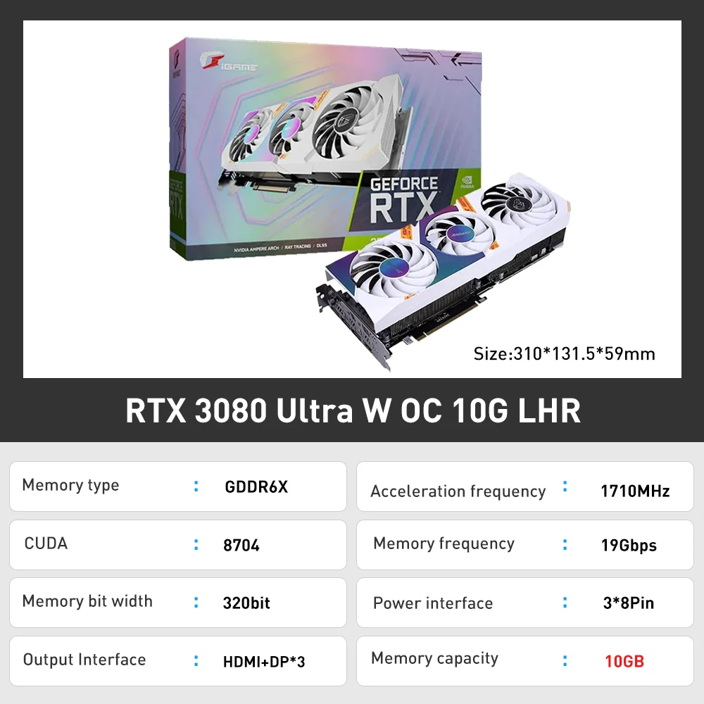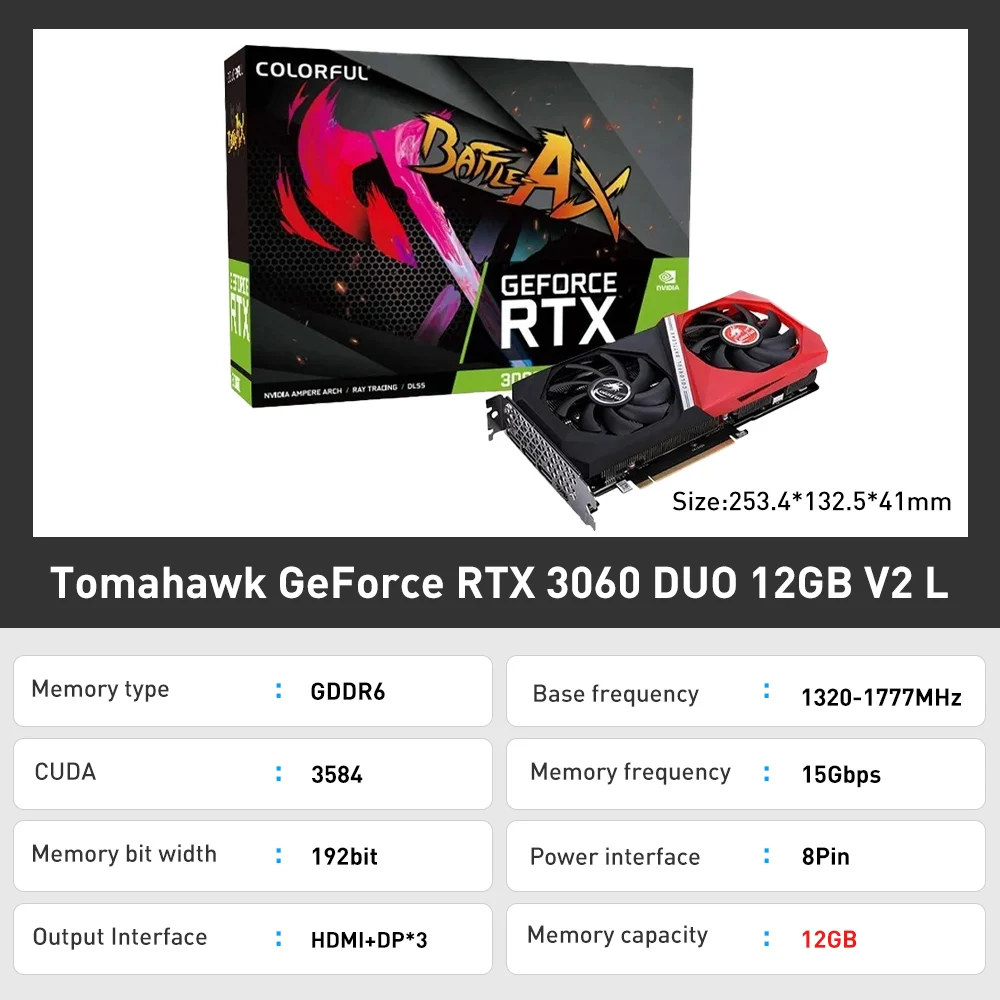 Comprar Tarjeta gráfica colorida GDDR6X rtx 3060 3060Ti rtx 3070 rtx 3080 8GB 12GB GPU para videojuegos, placa de vídeo LHR de 256 bits