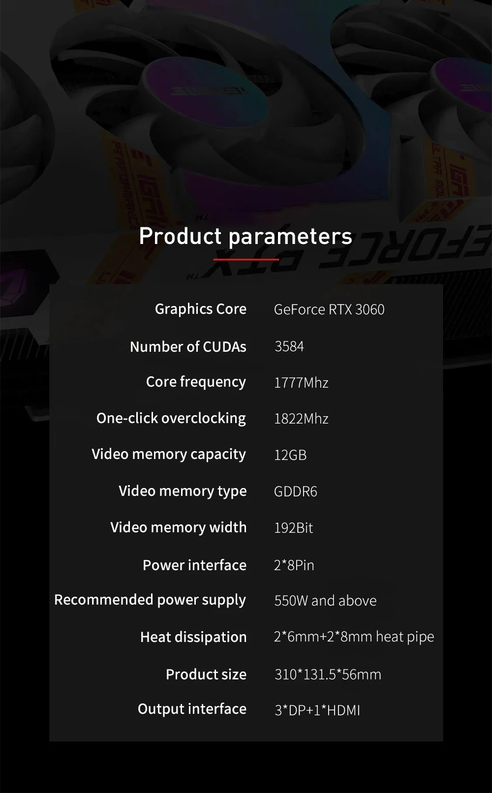 COLORFUL New Graphic Card GDDR6X rtx 3060 3060Ti rtx 3070 rtx 3080 8GB 12GB Gaming GPU Video Cards 256 Bit placa de vídeo LHR