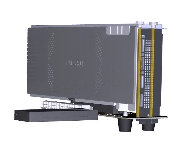 3. Puede conectar el cable M.2 cuando el ordenador esté apagado. Después de encenderlo, la fuente de alimentación ATX iniciará automáticamente el ventilador para que gire. Si utiliza la fuente de alimentación DELL, la luz verde se encenderá. En este momento, la placa R3G encenderá dos luces verdes. El sistema reconocerá la tarjeta automáticamente. Instale el controlador de la tarjeta gráfica. La Instalación del proceso de conducción puede hacer que el ordenador se reinicie.