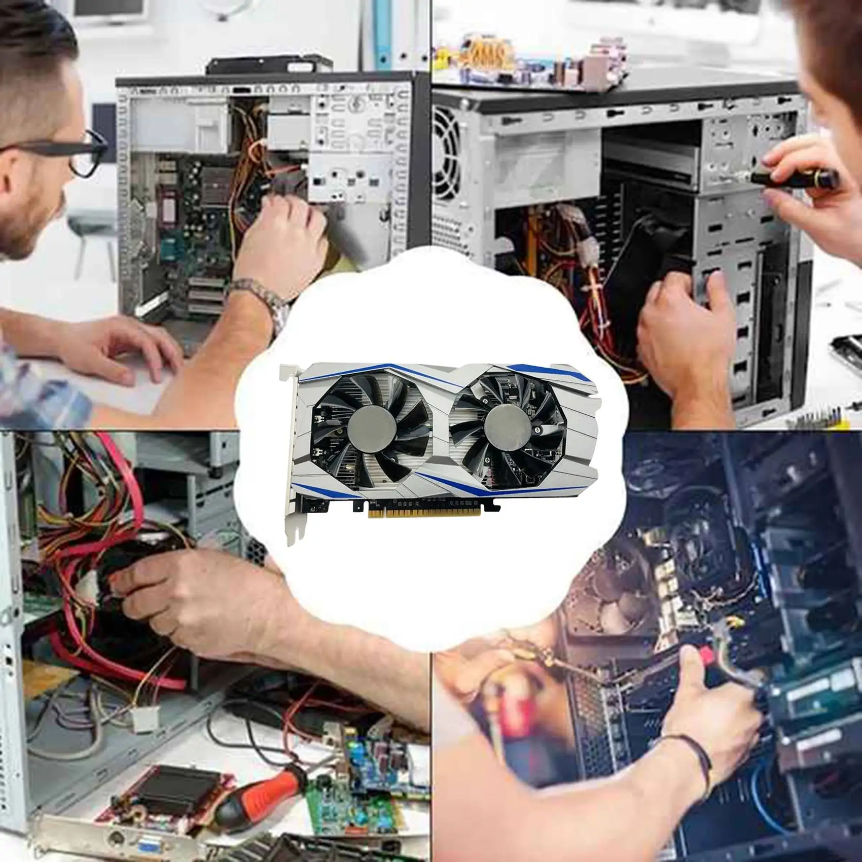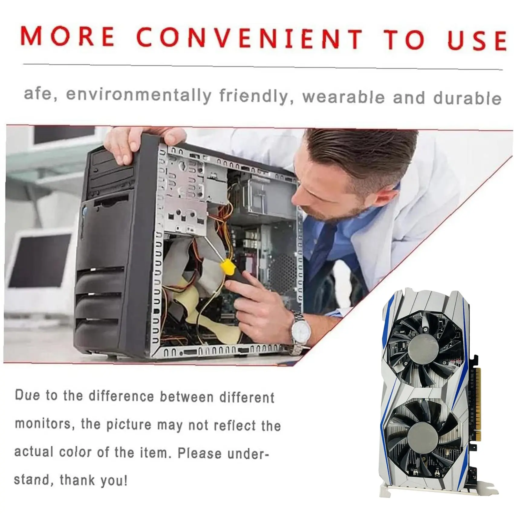Modelo: GTX550Ti 2GB DDR5 128Bit Capacidad de memoria: 2GB Tipo de memoria: GDDR5 Ancho del bus: 128 bit Tipo de interfaz: PCI Express 2,0 Interfaz de E/S: compatible con HDMI/enfriador DVI /VGA: 2 * ventilador Tenga en cuenta: diferentes lotes, la apariencia del producto y el color pueden ser diferentes, no afecta el color de uso: Negro Material: contenido del paquete de metal + plástico: 1 x Tarjeta gráfica Solo el contenido del paquete anterior, otros productos no están incluidos. Nota: La luz y las diferentes pantallas pueden hacer que el color del artículo en la imagen sea un poco diferente del real. El error de medición permitido es +/- 1-3cm.