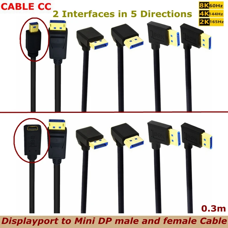 Comprar Tarjeta gráfica HD 8K @ 60HZ / 4K @ 0,3 HZ / 2K @ 144Hz coderas DP a Mini Displayport macho y hembra, Cable conectado a la pantalla, 165 m