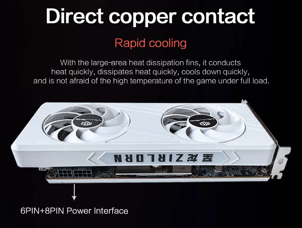 • Enfriador de doble ventilador: el diseño de enfriador de doble ventilador mejora la disipación del calor, manteniendo un rendimiento óptimo incluso durante sesiones de juego intensas o tareas de edición de video.