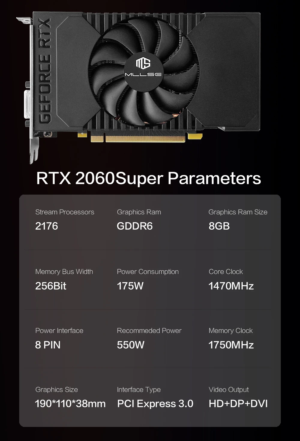 Comprar Tarjeta gráfica MLLSE más barata NVIDIA GeForce RTX 2060 SUPER 8GB GDDR6 256 bits PCIe 3,0 x16 GPU para juegos Escritorios Placa Виде®карта