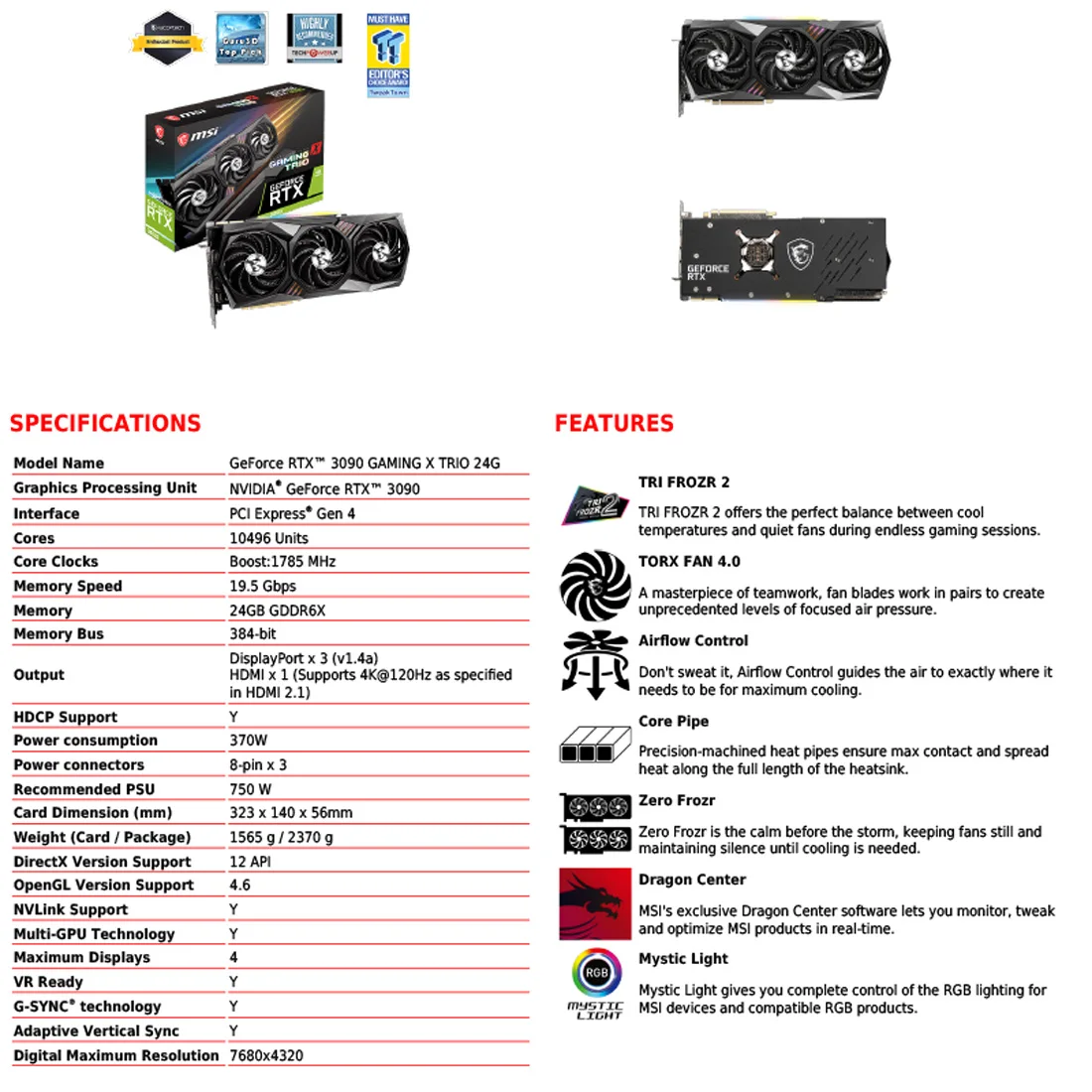 MSI RTX 3090 GAMING X TRIO 24G rtx3090 GPU GDDR6X RTX 3090 tarjeta 19500MHz HDCP Mining 3090 tarjeta de juego 19500MHz GDDR6X tarjeta gráfica NVIDIA RTX 3090 tarjeta de vídeo nueva