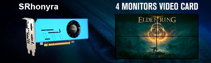 SRhonyraTarjeta de vídeo con múltiples monitores, permite a los usuarios conectar más de un monitor a la PC y extender el escritorio en varias pantallas.permite a los usuarios trabajar en múltiples aplicaciones simultáneamente o empalmar una pantalla grande