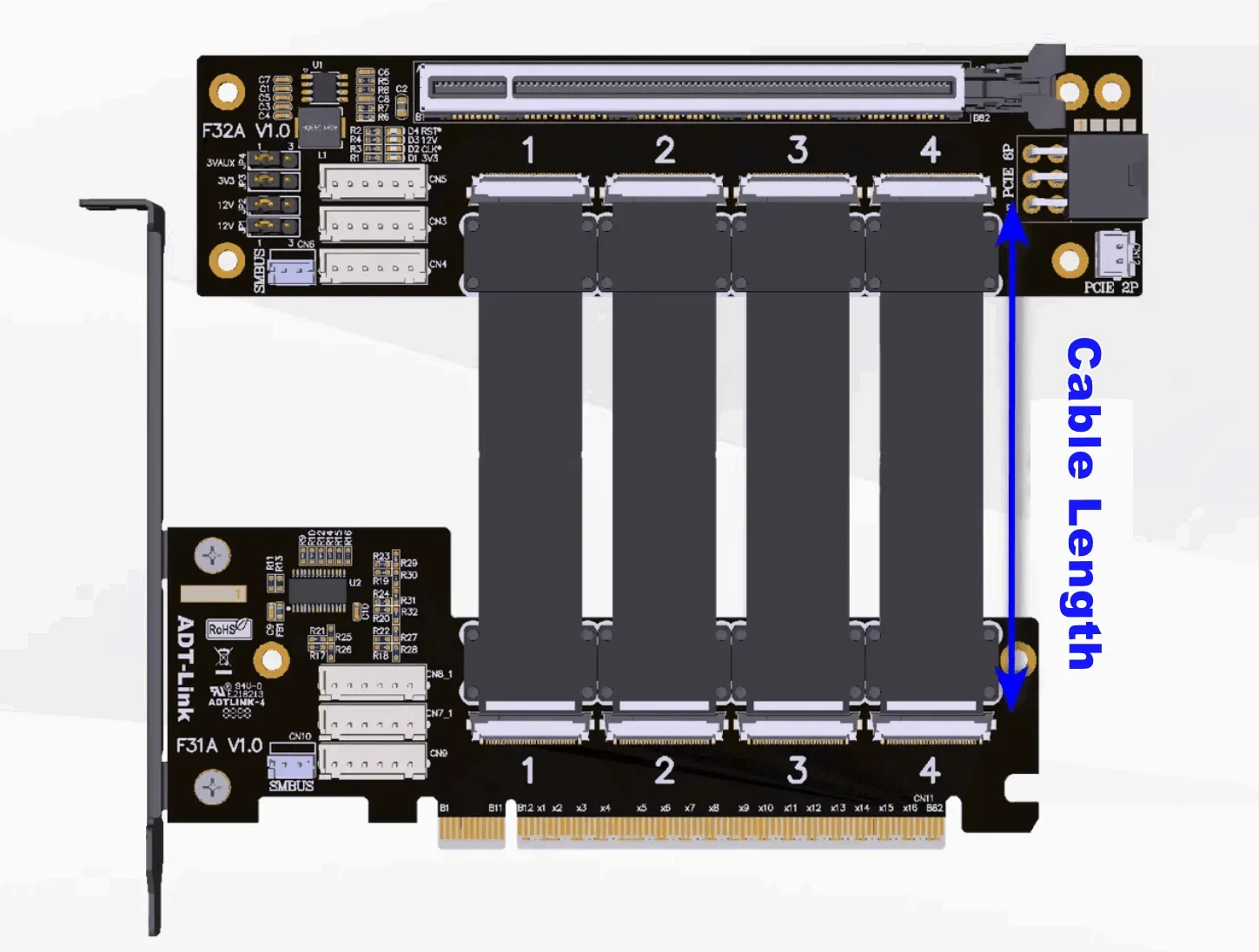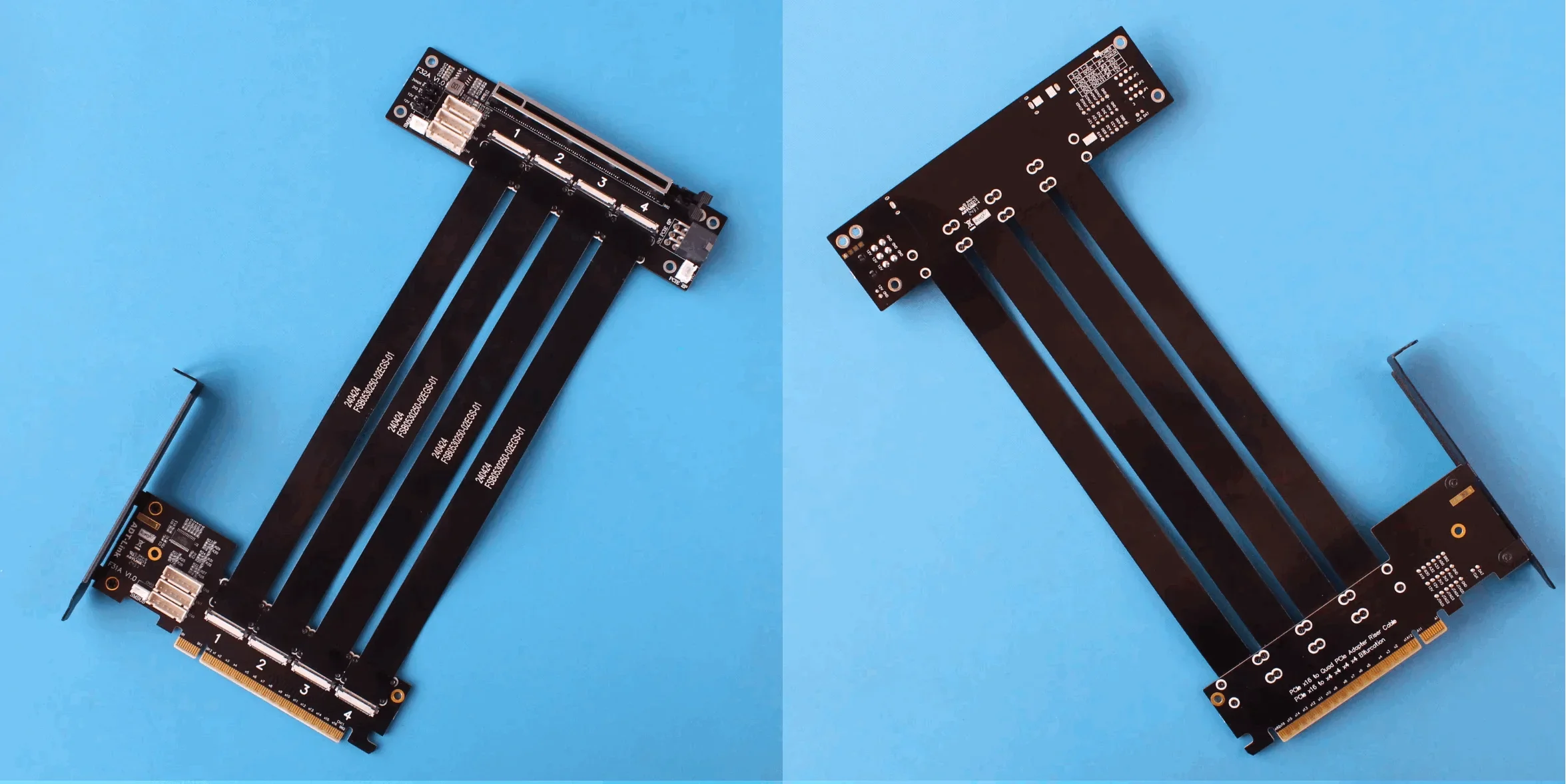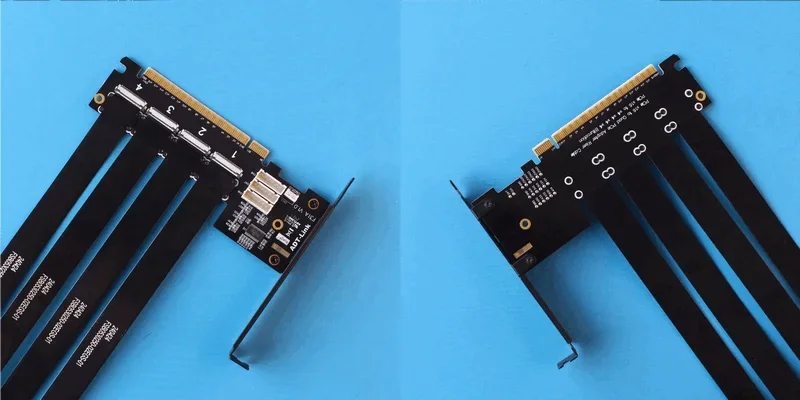 6. Este cable adaptador PCIe se puede dividir libremente, admite placa base Bifurcación PCIE admite uno a uno, uno a dos, uno a tres, uno a cuatro, diseño flexible y amplia aplicación.
