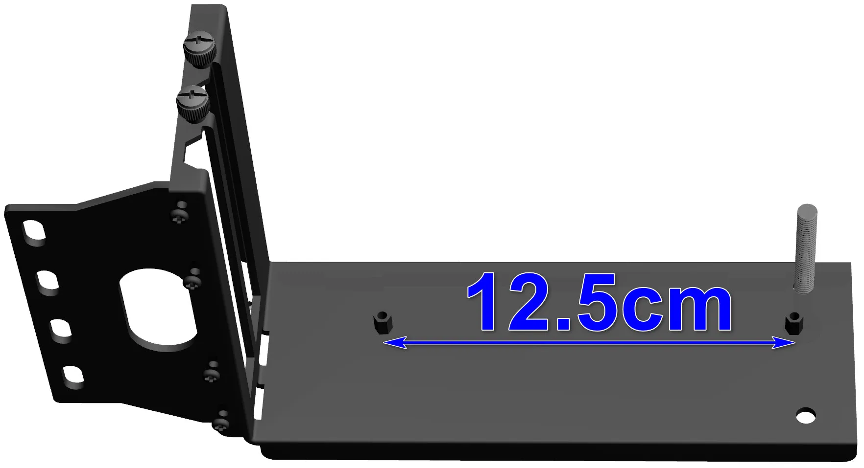 Como se muestra en la siguiente figura, use un ajuste de perno de 6 mm, el rango ajustable es de 0 ~ 5,5 cm y la esquina inferior derecha del soporte solo está sostenida por el perno.