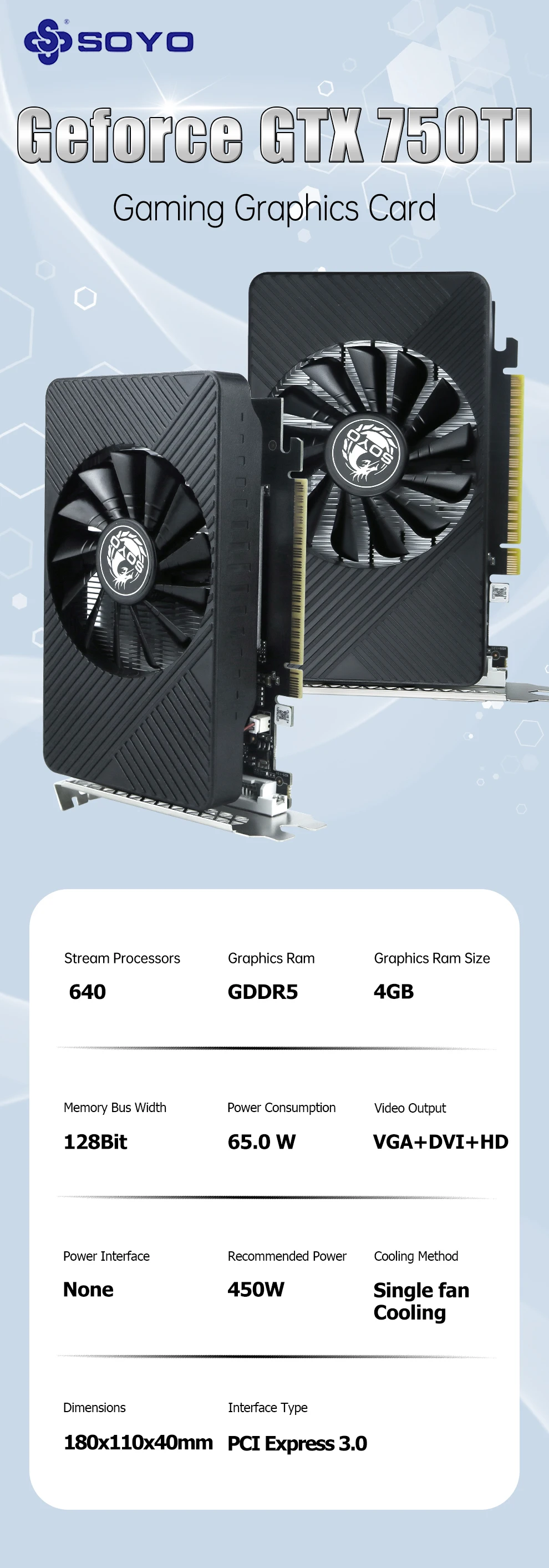 Comprar Tarjeta gráfica SOYO NVIDIA GPU GTX 750Ti 4G GDDR5 128Bit 28nm PCI-E 3,0 tarjetas de vídeo para juegos componentes de ordenador de escritorio nuevo