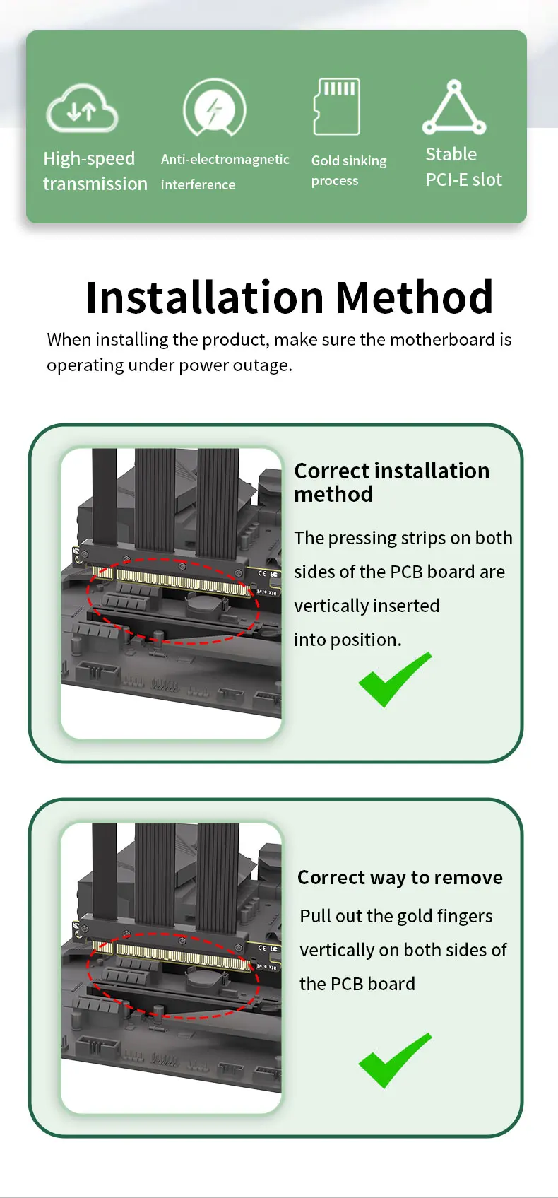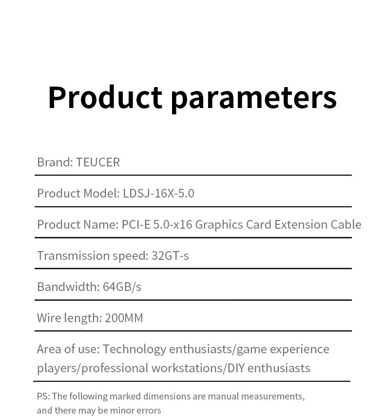 Experimente una transferencia de datos ultrarrápida con el cable de extensión de ángulo recto PCIE 5.0 X16 GPU de la tarjeta gráfica de Teucer, diseñado para compatibilidad con PCIe 4.0 y que ofrece una velocidad notable de 128 GB/s.