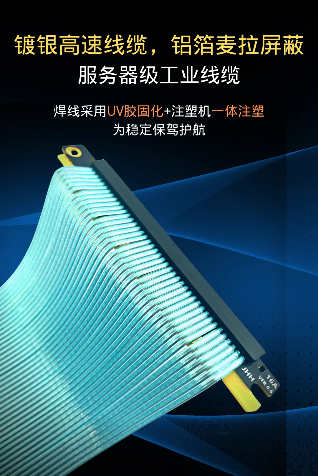 1. Utilizando una nueva generación de conectores Amphenol GEN4, las hebillas de la aeronave se instalan firmemente y los cables plateados importados alcanzan los 64GB, lo que cumple con el estándar de transmisión PCIE 4,0.