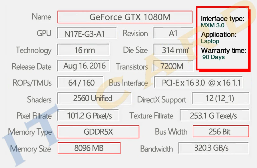Comprar Tarjeta gráfica de vídeo GTX1080M, GTX 1080M, GDDR5, 8GB, N17E-G3-A1, GTX1070M, GTX1060M, con x-bracket, para Dell Alienware / MSI/ HP/ Clevo