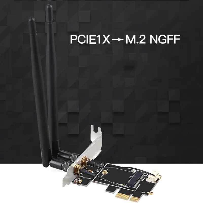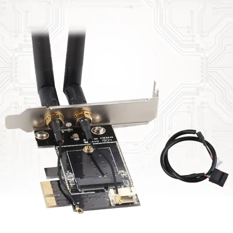 Descripción: Nuevo, alta calidad Características: El adaptador pasivo PCI-E para tarjeta M.2/NGFF está diseñado para aplicaciones inalámbricas en piezas de escritorio que convierten MiniCard de tamaño medio (NGFF) en USB 9pin Header o ranura estándar PCI-Express 1x. Puede insertar su tipo USB para la tarjeta M.2 en este adaptador y luego conectarlo al puerto USB de 9 pines a través del cable USB. O inserte su tipo PCI-E para la tarjeta M.2/NGFF en este adaptador y luego inserte el conector PCI-E 1x. La tarjeta combinada compatible con WiFi y Bluetooth, como Dual Band Wireless-AC 7260/7265/8260ac, se puede utilizar para admitir WiFi por PCIe y compatible con Bluetooth por USB al mismo tiempo. Tarjeta adicional PCI Express1x de baja altura-Altura estándar por soporte incluido Admite minitarjeta PCIe: IEEE WLAN802.11a B 802.11d, 802.11e, 802.11i, 802,11 H, 802.11ac Transparente a los sistemas operativos y no requiere ningún software (Tenga en cuenta que la tarjeta WIFI necesita el software