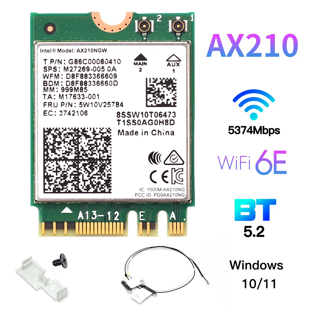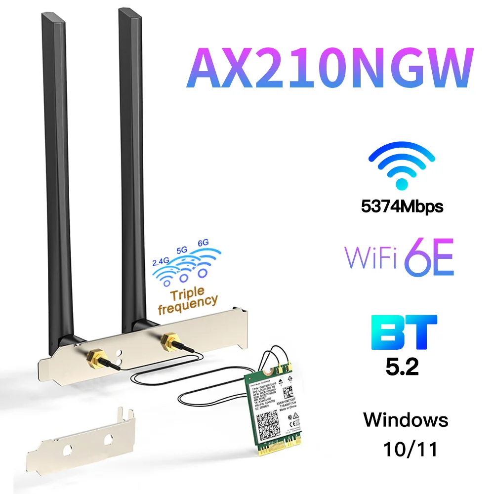 Comprar Tarjeta inalámbrica WiFi 6E Intel AX210, 5374Mbps, BT5.3, Kit de escritorio, antena 802.11ax, tribanda 2,4G/5Ghz/6G AX210NGW que Wifi6 AX200