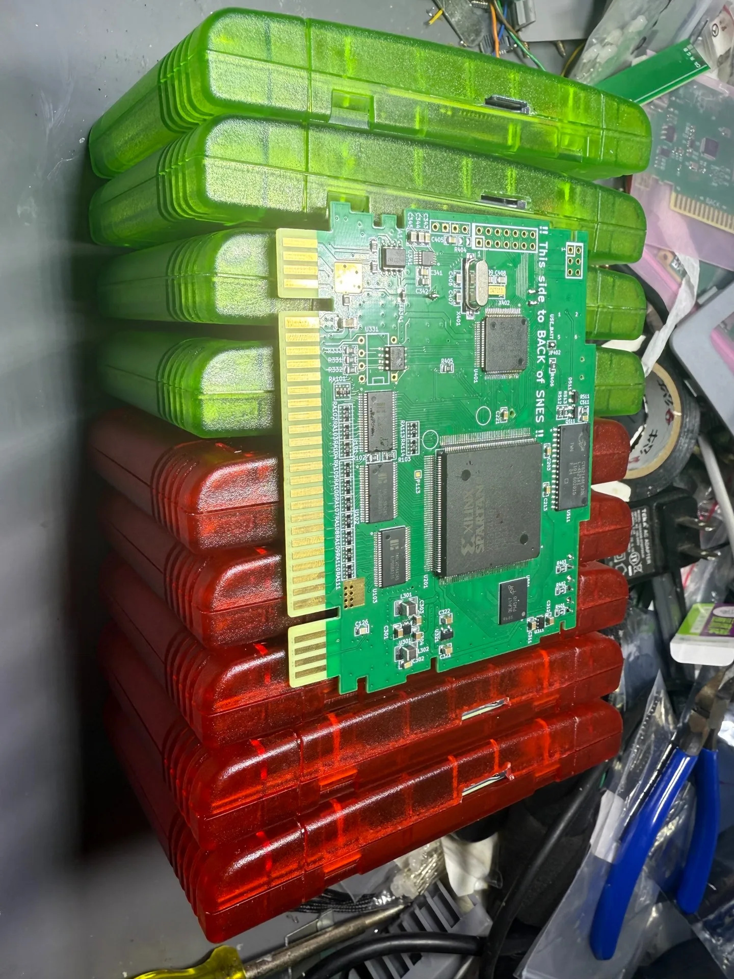 este cartucho es buenísimo. deja jugar a todos los juegos de super nes o famicom en cualquier consola, implementa todos los chips especiales incluidos los de protección extra regional.
