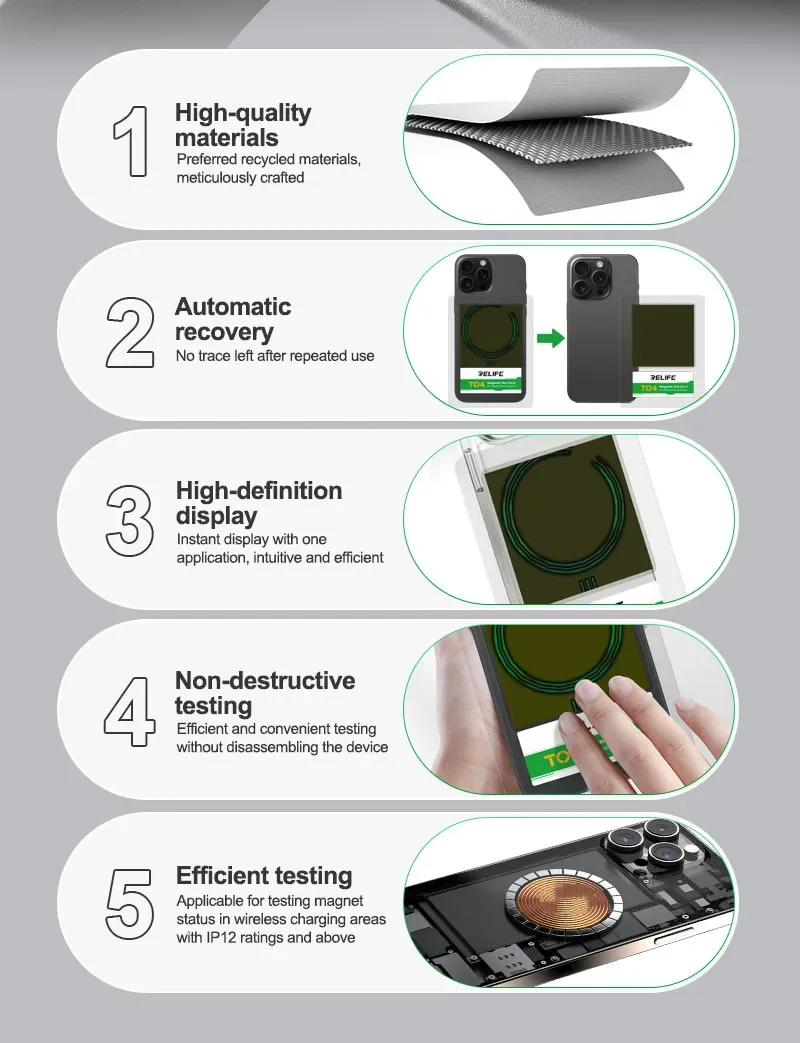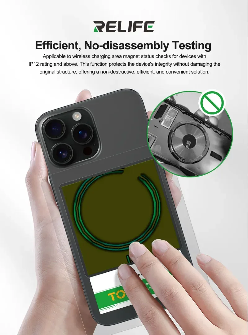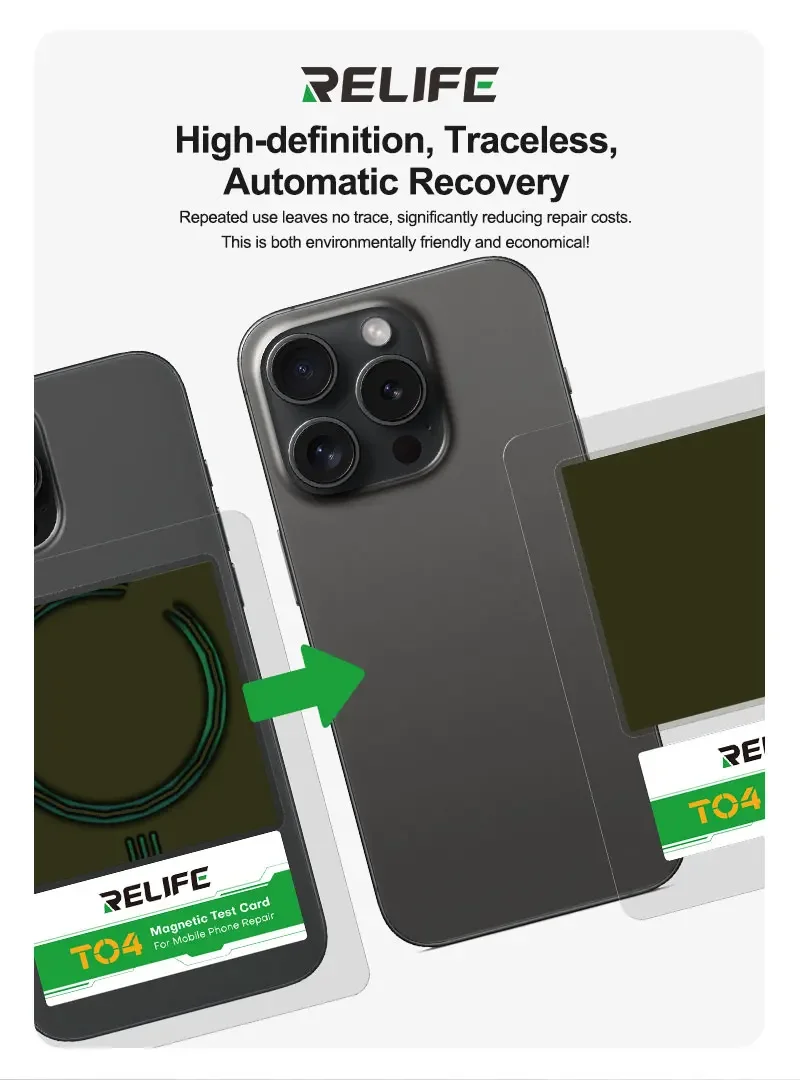Tarjeta magnética RELIFE TO4 para reparación de teléfonos móviles, pruebas no destructivas, área de carga ilimitada, herramienta de detección visible magnética