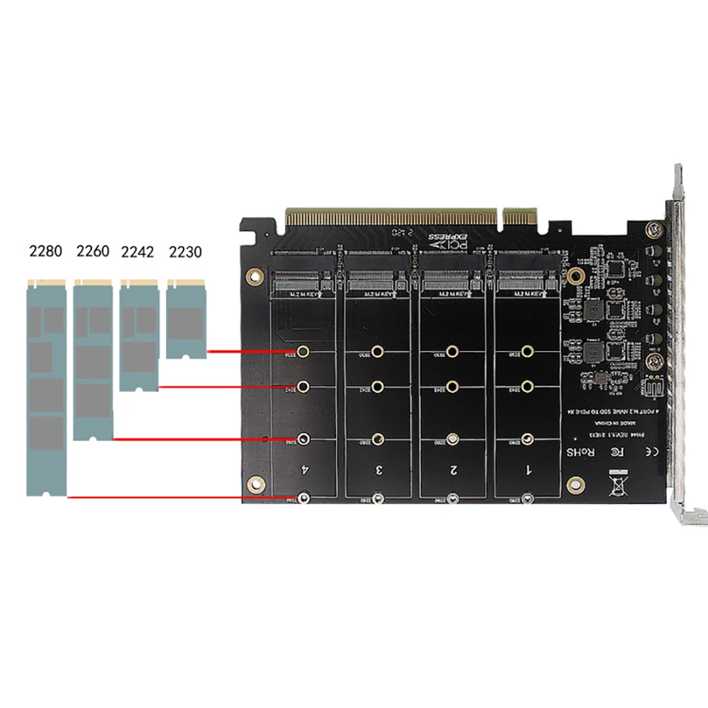 Comprar Tarjeta de matriz de disco de estado sólido RAID 4 Bay, adaptador de 4x32Gbps, PCIE X16, tarjeta divisora para NVME M.2 MKEY 2230, 2242, 2260, 2280, SSD