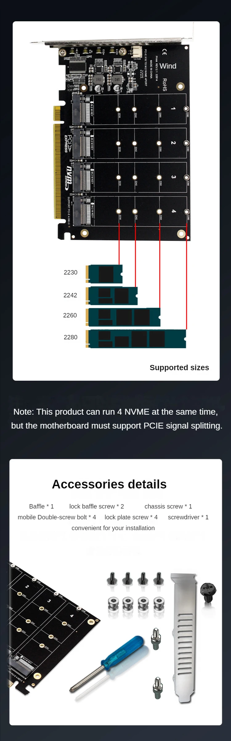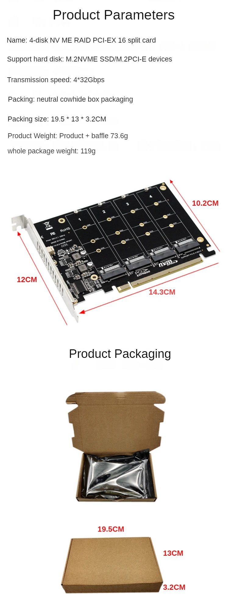 Item Name: 4 sets of NVME RAID PCI-E X16 split card