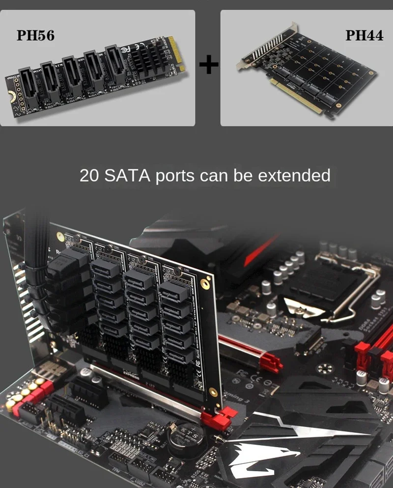 Comprar Tarjeta de matriz dividida de señal JMB585 PCI-E X16, NVME M.2, 4 x discos, tarjeta RAID, expansión PCIe 16x a SATA, tarjeta adaptadora de extensión de 20 puertos