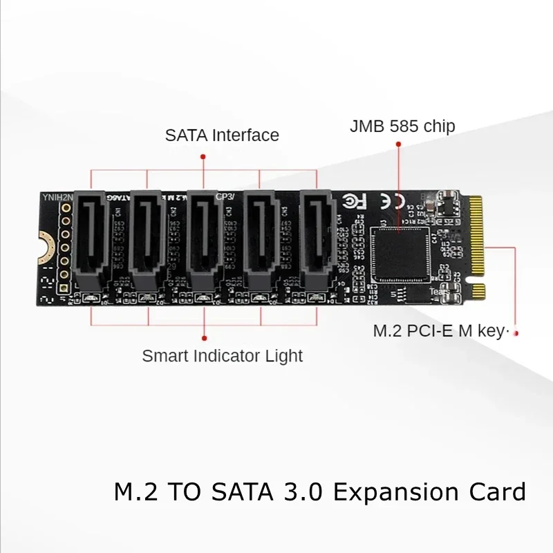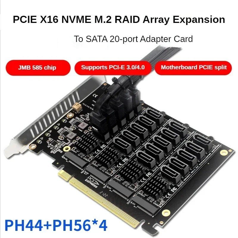 Tarjeta de matriz dividida de señal PCI-E X16 M.2 NVME 4 disco Placa Raid expansión PCIe 16x a SATA 20 puertos tarjeta adaptadora extendida Chip JMB585