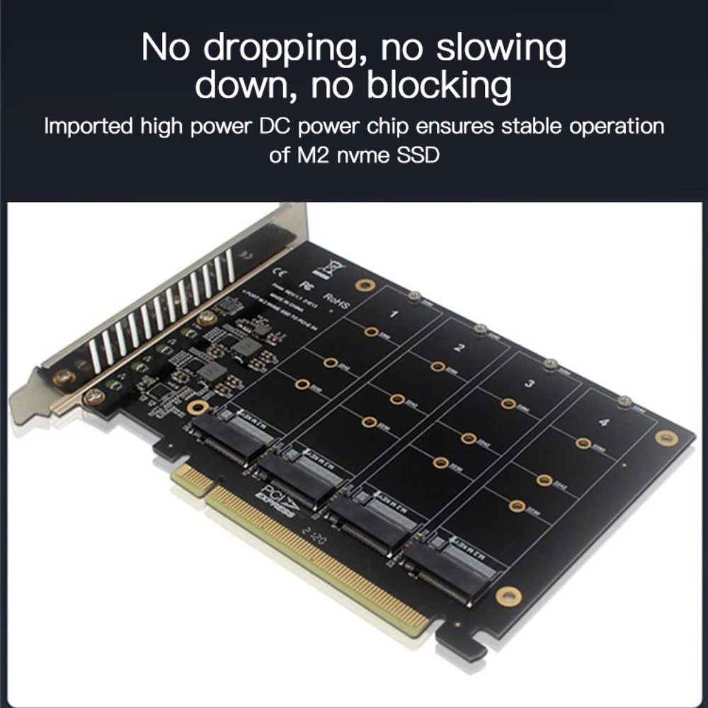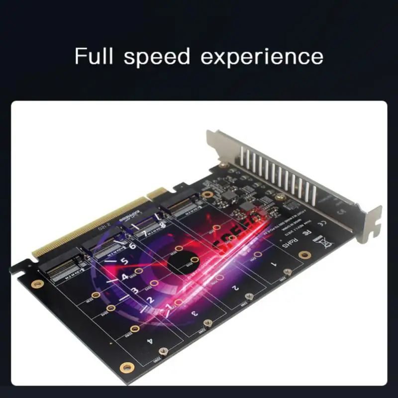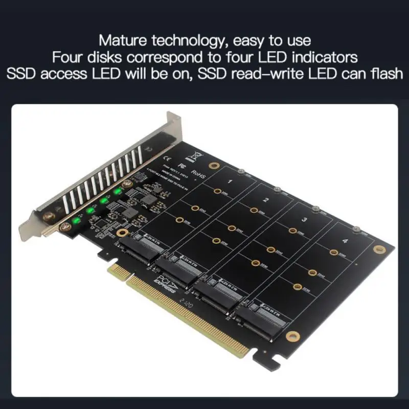 Tarjeta de expansión PCI-E X16 de 4 discos con señal de velocidad completa de 4*32Gbps y expansión simultánea.