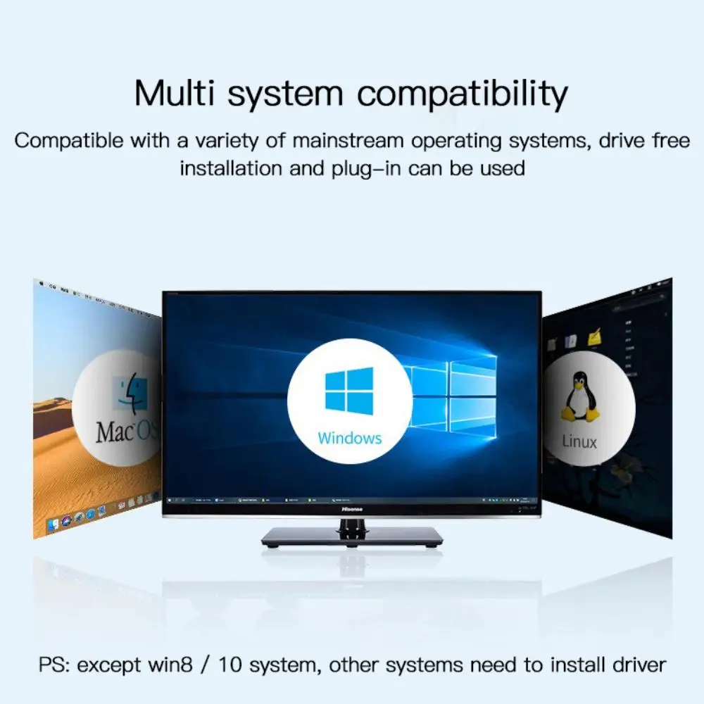 Compatibilidad multisistema, compatibilidad con varios sistemas operativos convencionales, instalación sin disco, plug-in y uso (PS: otros sistemas necesitan instalar controladores, excepto el sistema Win8/10).