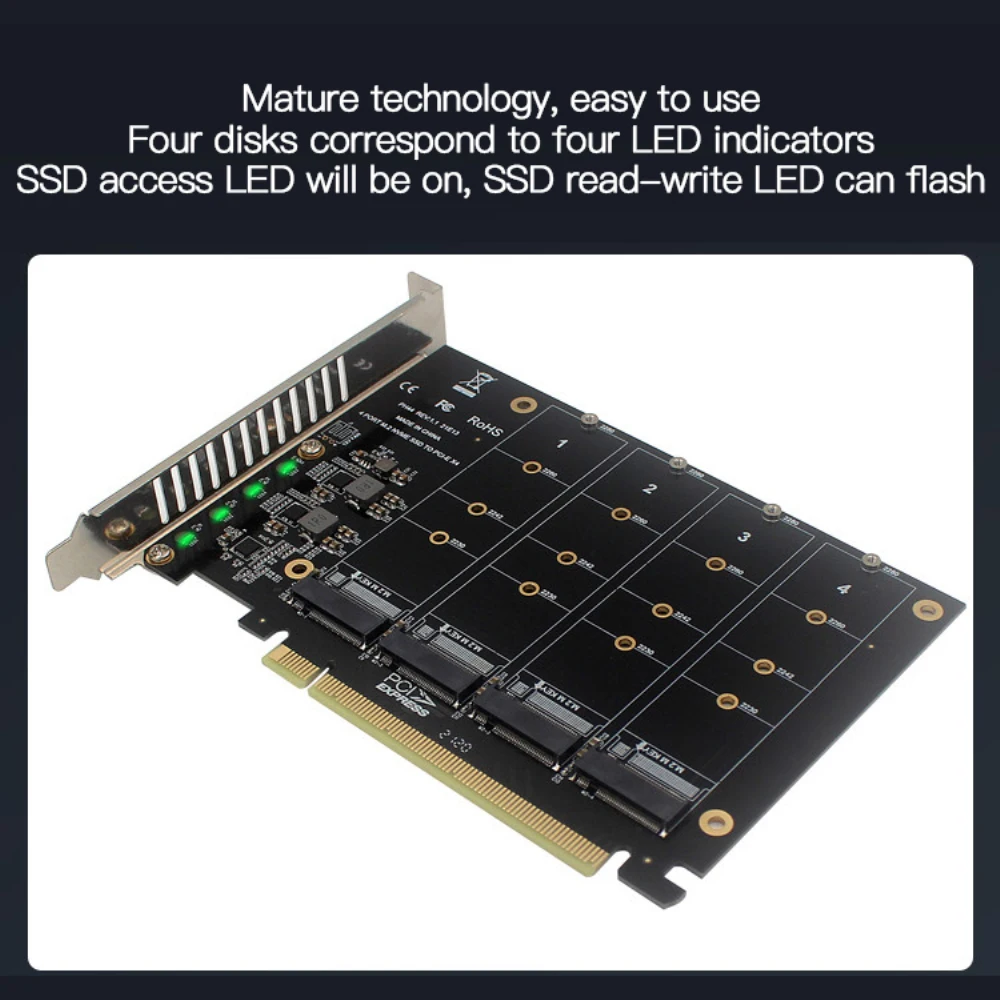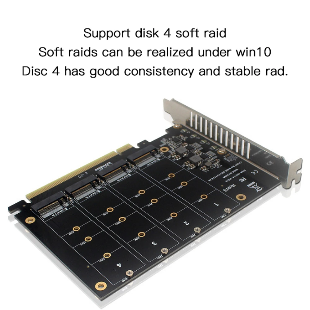 Tarjeta de matriz de unidad de estado sólido de 4 discos, estructura sólida, PCB grueso, interfaz PCIEX16 estable, cuida sus datos importantes.
