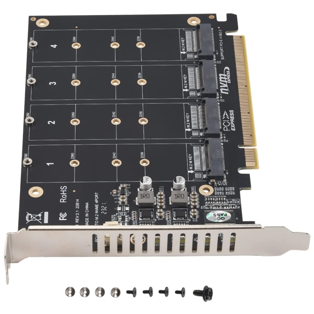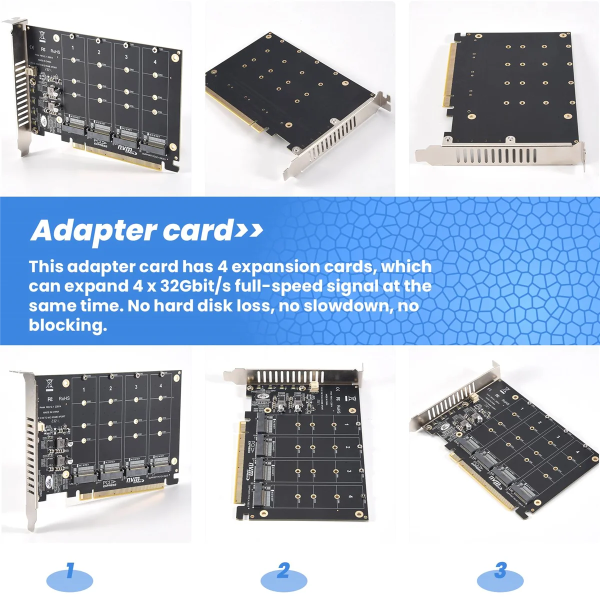 1. Esta tarjeta adaptadora tiene 4 tarjetas de expansión, que pueden ampliar la señal de velocidad completa de 4x32Gbit/S al mismo tiempo. Sin pérdida de disco duro, sin desaceleración, sin bloqueo, equipado con un chip de alimentación de CC de alto rendimiento para garantizar un funcionamiento estable de M2.NVME SSD. Soporte 2230 2242 2260 2280