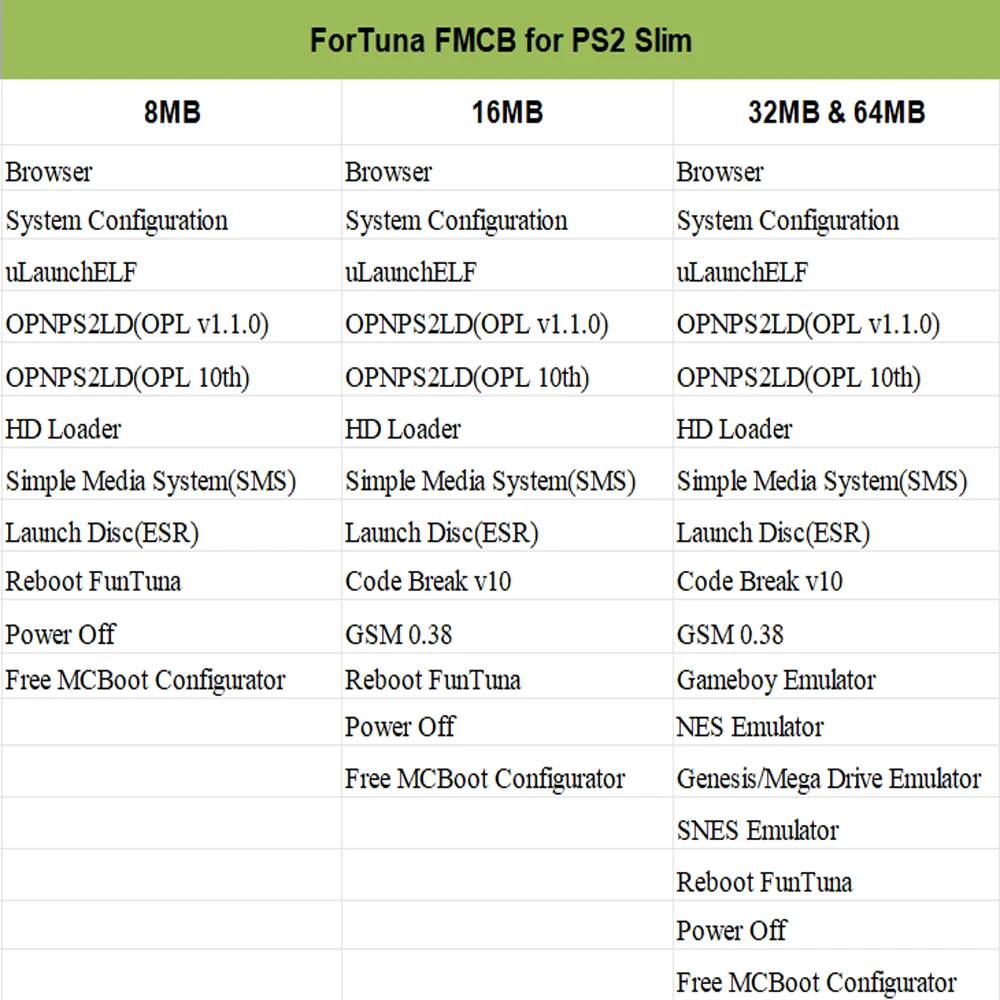 Tarjeta de memoria McBoot gratuita Bitfunx Fortuna FMCB para consola de juegos Sony Playstation2 PS2 Slim