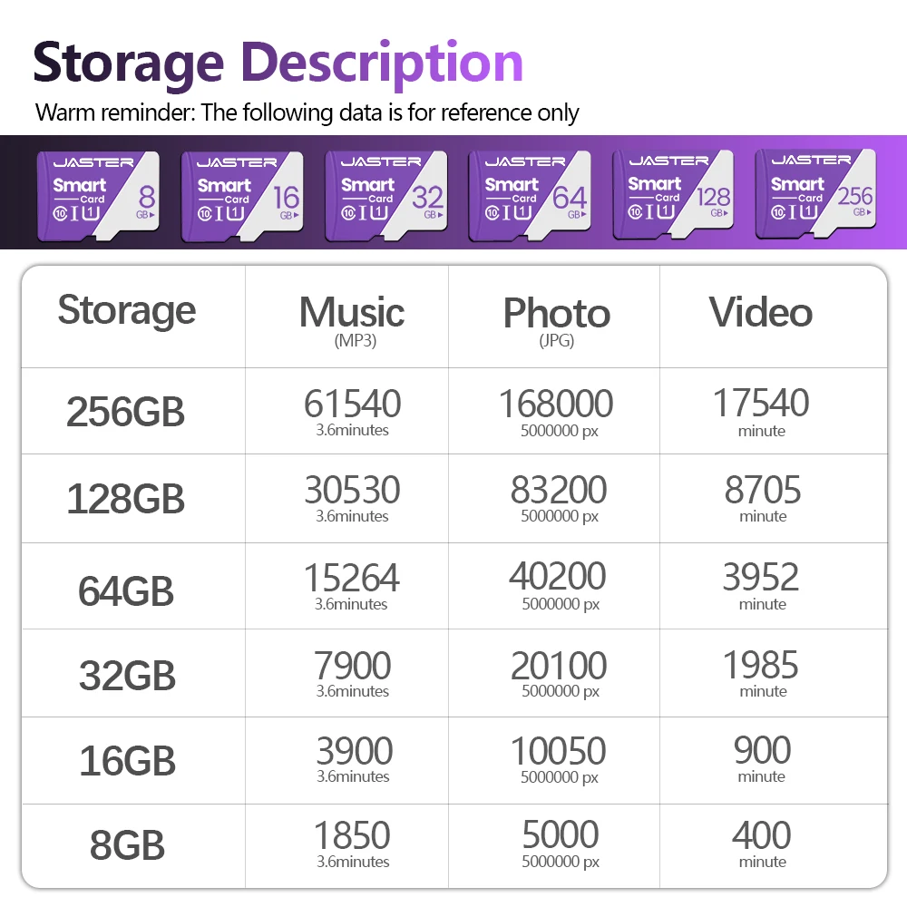 Tarjeta de memoria JASTER 256GB 128GB Mini tarjeta TF de alta velocidad C10 U1 A1 para dispositivo de vigilancia de Audio Drone Tarjeta SD de 64GB Más dispositivo