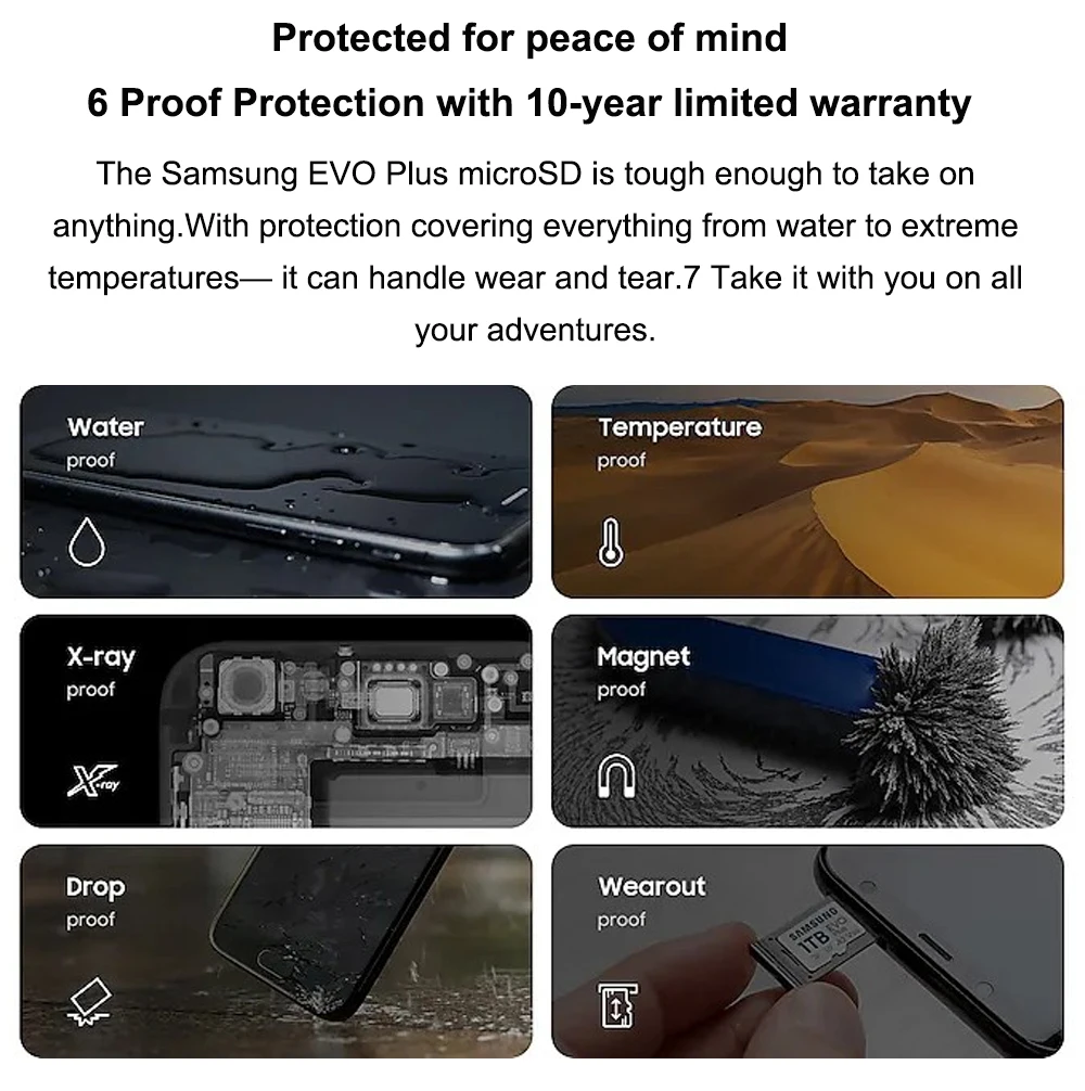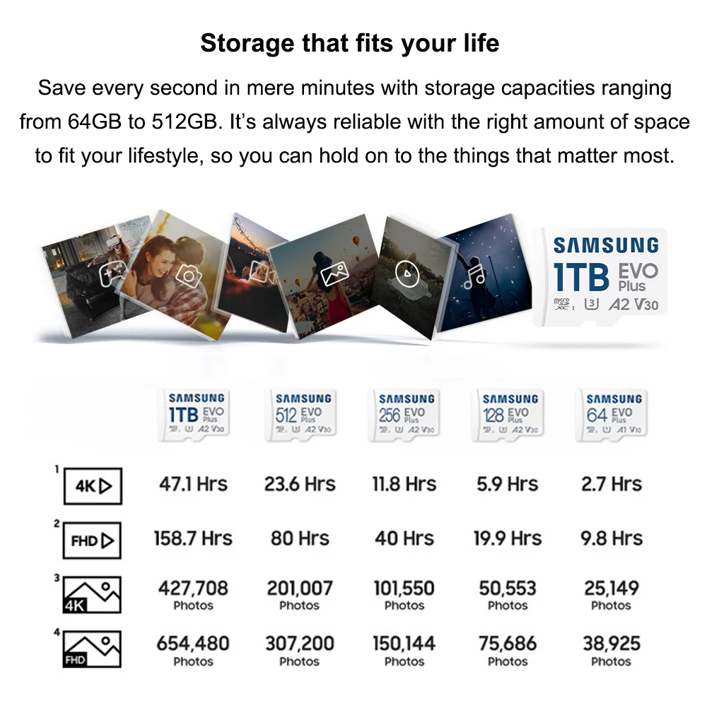 Comprar Tarjeta de memoria Micro SD SAMSUNG 100% Original, 1TB/512GB/256GB/128GB, tarjeta TF C10 U3 A2 V30, tarjeta de memoria 4K, Micro SD de 64GB para teléfono