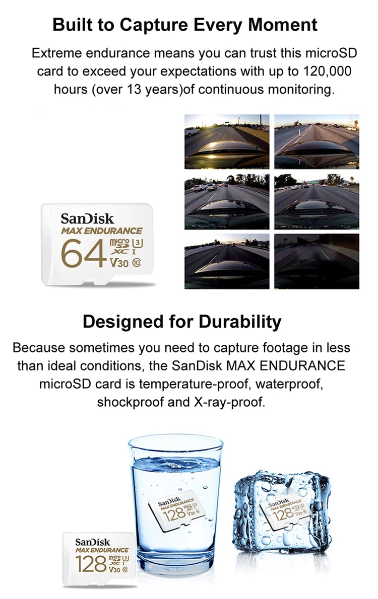 Comprar Tarjeta de memoria microSD SanDisk de alta resistencia 256GB 128GB 64GB 32GB tarjeta TF de resistencia máxima Full HD V30 4K para cámaras de acción/drones