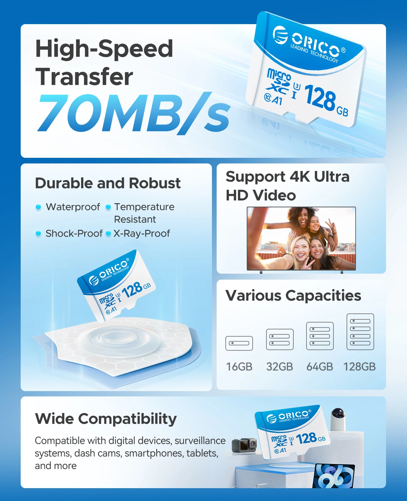 La tarjeta micro SD ORICO ofrece un rendimiento confiable, lo que garantiza una transferencia de datos rápida y un funcionamiento estable.