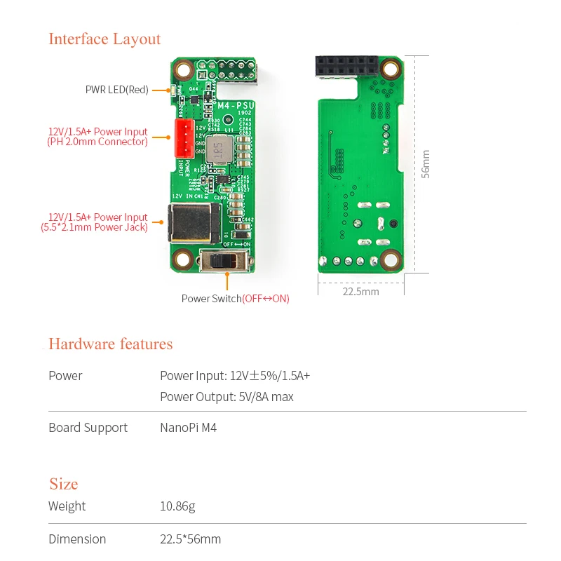 Nanopi-Placa de extensión de alimentación de 12V, soporte para Nanopi M4