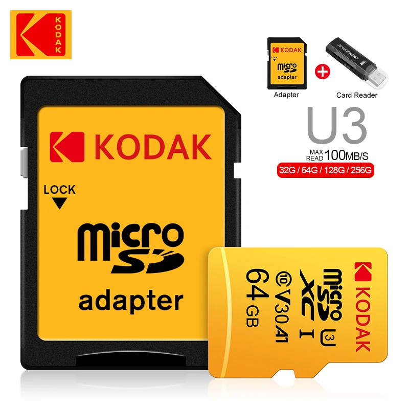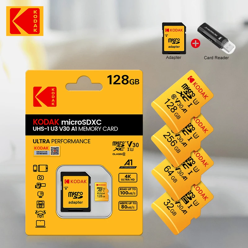 Comprar Tarjeta Micro SD KODAK de alta velocidad U3 128GB/256GB/512GB V30 tarjeta TF para tarjeta de memoria 4K HD con adaptador SD para lector de tarjetas