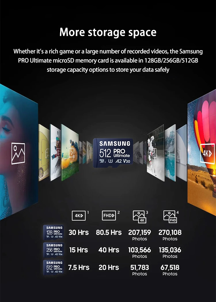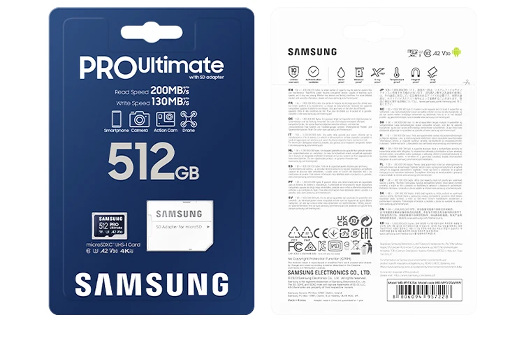 Tarjeta Micro SD SAMSUNG PRO Ultimate A2 U3 V30 microSDXC UHS-I Tarjeta de memoria Microsd de 128 GB 256 GB 512 GB Tarjeta TF flash de alta velocidad de 200 MB/s