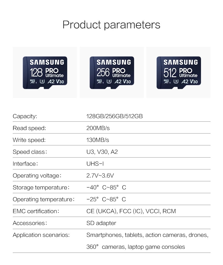 Comprar Tarjeta Micro SD SAMSUNG PRO Ultimate A2 U3 V30 tarjeta microSDXC UHS-I 128GB 256GB 512GB tarjeta de memoria de alta velocidad 200MB/s tarjeta Flash TF