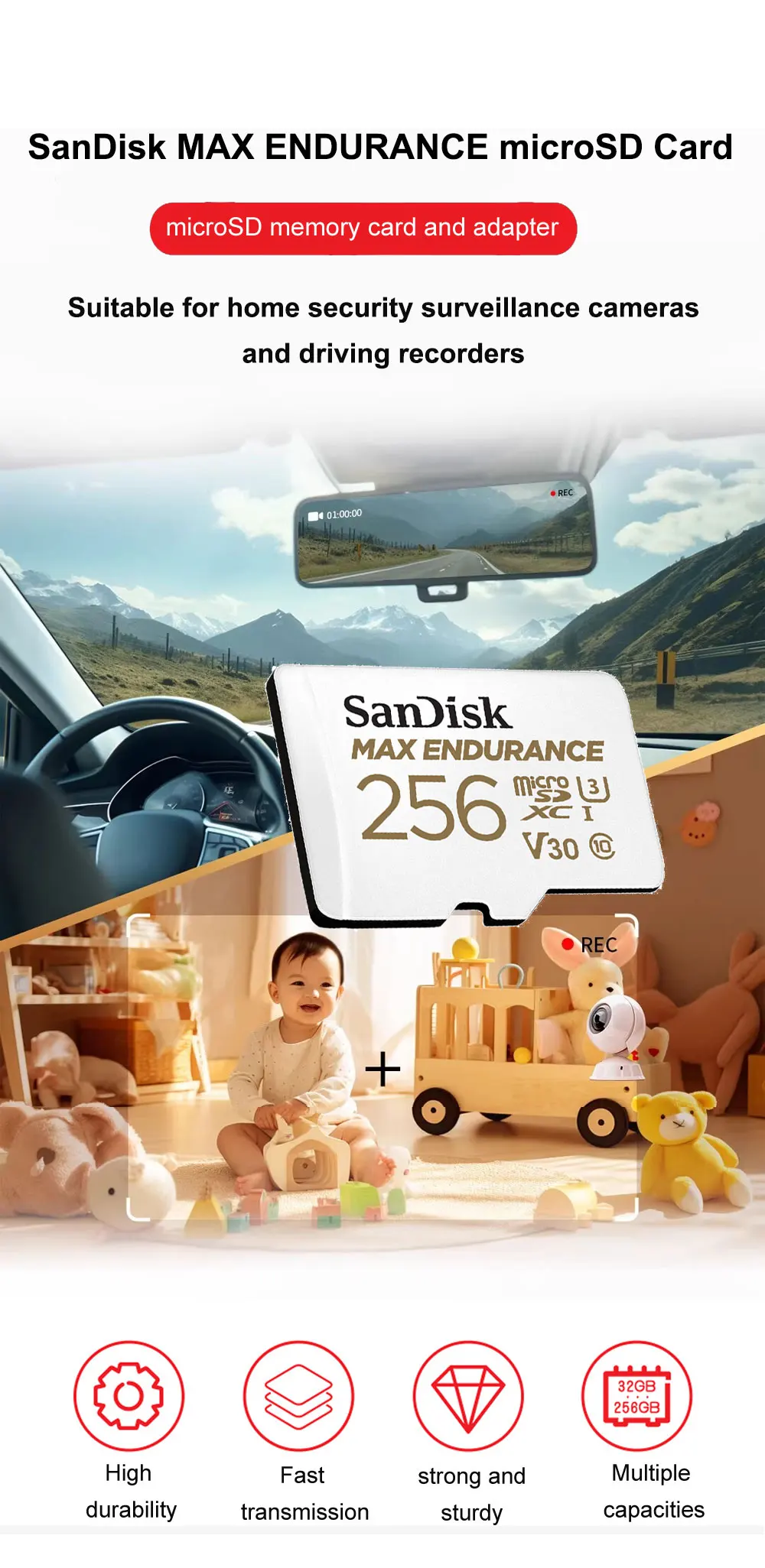Comprar Tarjeta microSD SanDisk MAX ENDURANCE 32GB 64GB 128GB 256GB Tarjeta de memoria U3 4K Full HD para grabadora de conducción y cámara de vigilancia