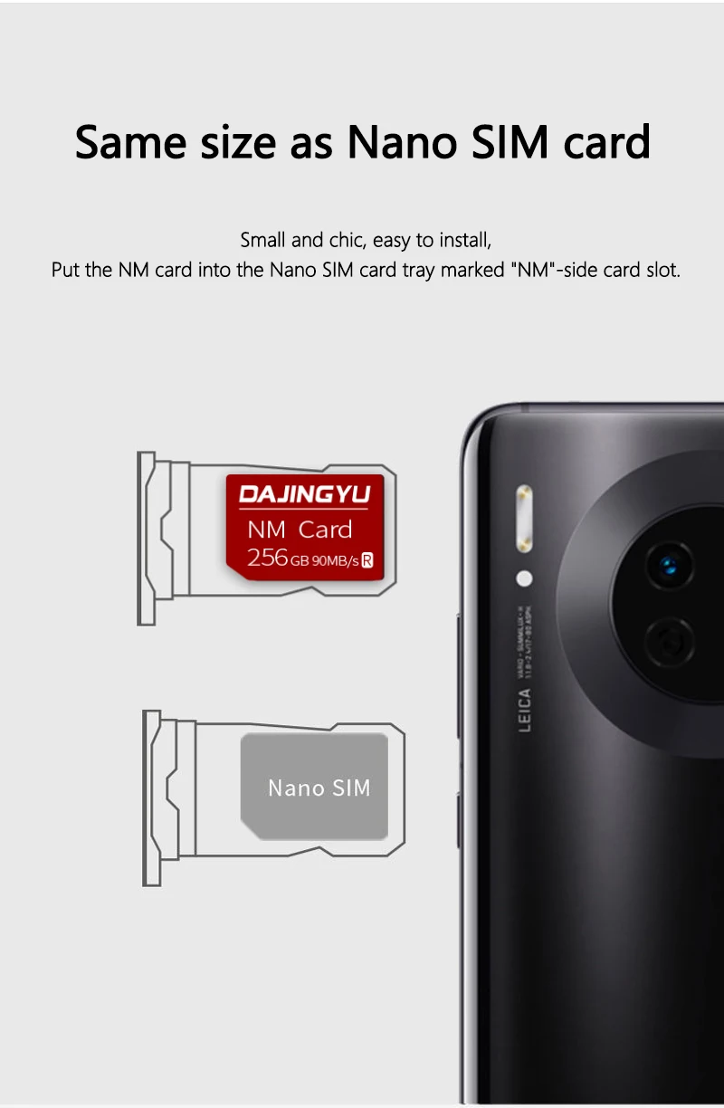 Comprar Tarjeta NM, tarjeta de memoria nano de 256/128/64GB para Huawei Mate40 Mate30 X Pro P30 P40 Pro series Nova5 6 versión MatePad, lectura de 90 MB/s