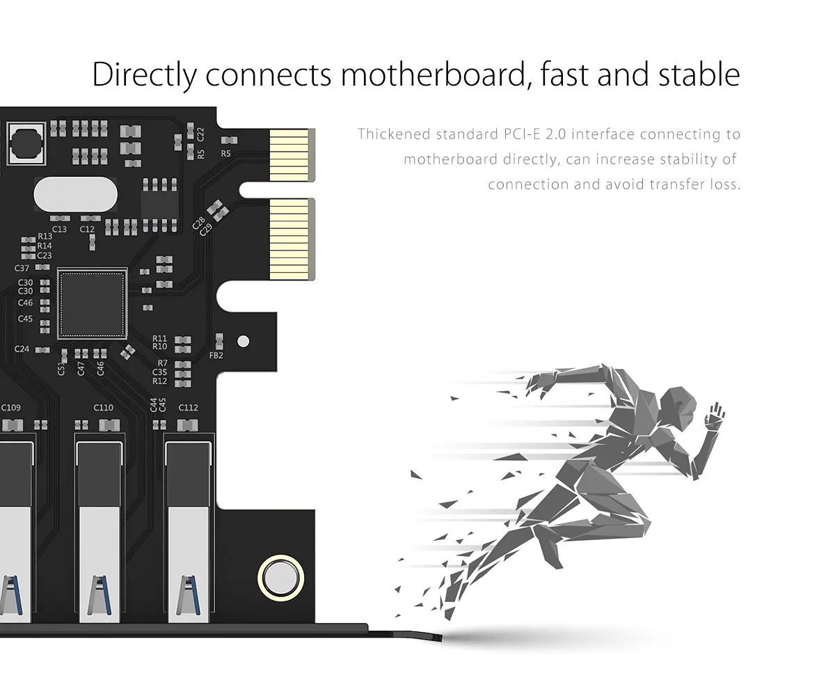 • cumple con el estándar PCI Express versión 2.0.• Cumple con el estándar Universal Serial Bus 3.0.• La velocidad de transmisión de la interfaz USB 3.0 podría alcanzar los 5 Gbps, compatible con versiones anteriores de USB 2.0 1.1.• Un dispositivo USB a conectar simultáneamente 7tlg.• La interfaz USB podría proporcionar una fuente de alimentación de 5V2A al dispositivo externo.• Interfaz de 15 pines para fuente de alimentación opcional.• Admite controlador certificado WHQL de Windows XP / 7/8 / 8,1 / 10 y 32 bits o 64 bitsEspecificación:Artículo: expansión de 7 puertos USB3.0 mediante adaptador PCI-ExpressColor negroInterfaz de salida: USB3.0*7Tamaño: 121*83*20mmTipo: tarjeta USB3.0 PCI ExpressEl paquete incluye:• 1 tarjeta controladora Monster ORICO USB3.0• 1 x tornillo de montaje• 1 manual de usuario• 1 tarjeta de servicio