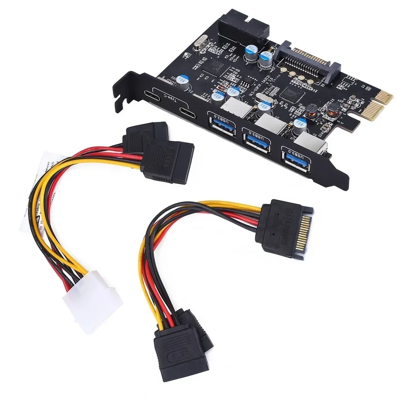 Comprar Tarjeta PCI Express a 3 PUERTAS USB 3,0 2 PUERTAS USB3.1 tipo C USB interno 3,0 20 pines 7 puertos USB HUB Pcie a tarjeta de expansión Tyoe-c