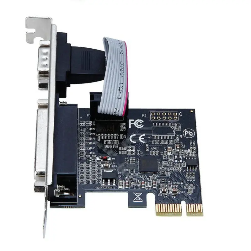 Comprar Tarjeta PCI express a puerto Serial y paralelo, puerto de impresora RS232 Com, PCIe PCI-e, tarjeta vertical moschip 9900