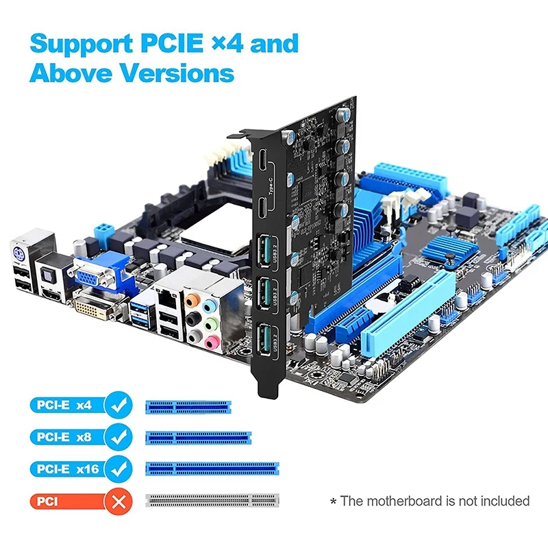 Comprar Tarjeta PCIe a USB 3,2 Gen 2, con ancho de banda de 20Gbps, 5 puertos (3X USB-A -2X USB-C), convertidor, divisor PCIE para Windows 10/8, nuevo