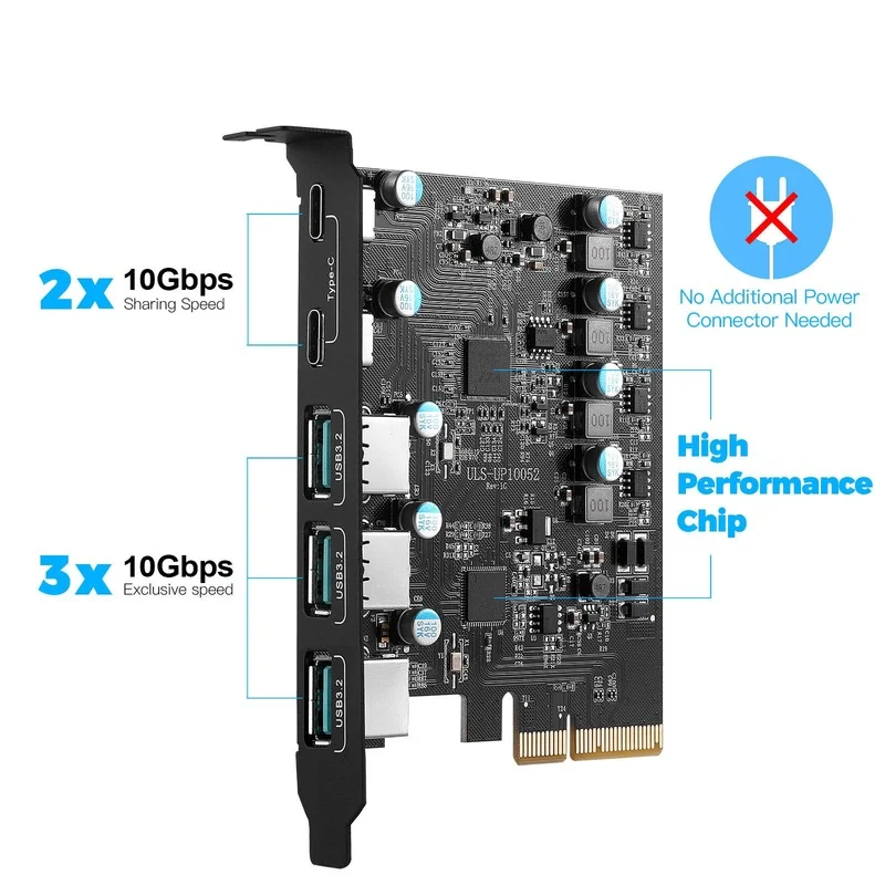 Comprar Tarjeta PCIe a USB 3,2 Gen 2, con ancho de banda de 20Gbps, 5 puertos (3X USB-A -2X USB-C), convertidor, divisor PCIE para Windows 10/8, nuevo