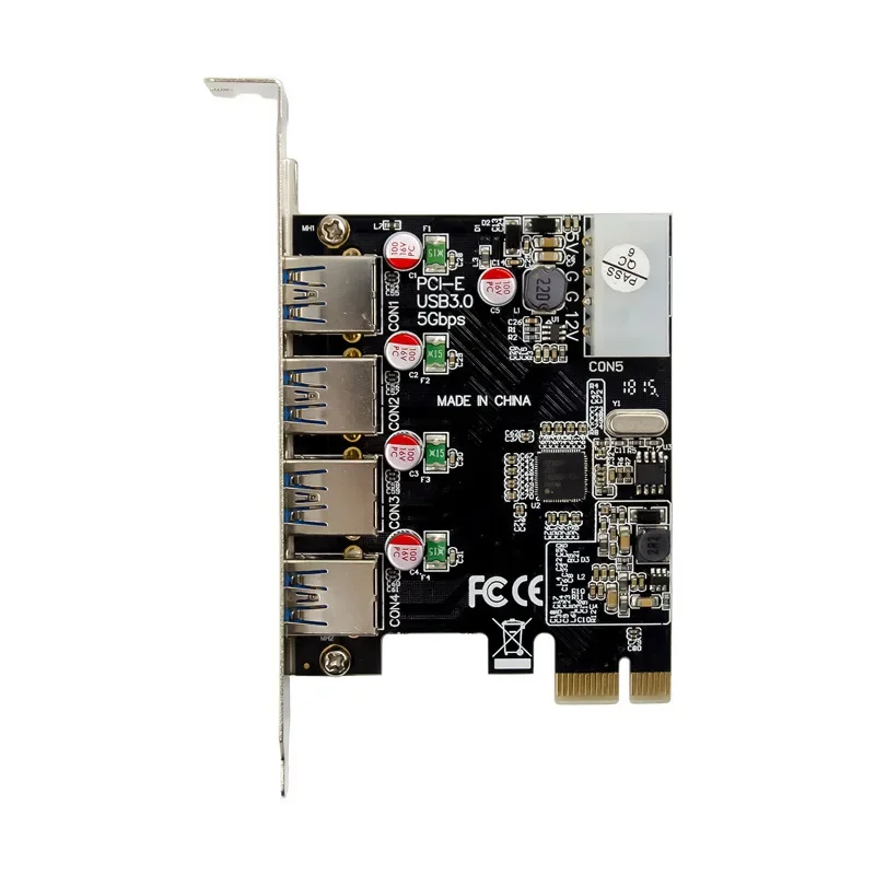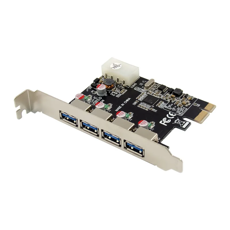 Tarjeta PCIE X1 a USB 3.0 NEC 720201 Chip 4 puertos USB3.0 TYPE-A Convertidor de expansión de cuatro puertos Tarjeta adicional Fuente de alimentación de 4 pines